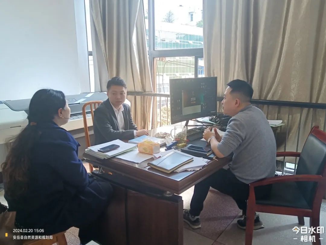 ▶ 盛安集团副总经理董小军与县自规局对接盛安未来城房地产开发项目规划方案事宜,恒誉公司负责人参加。