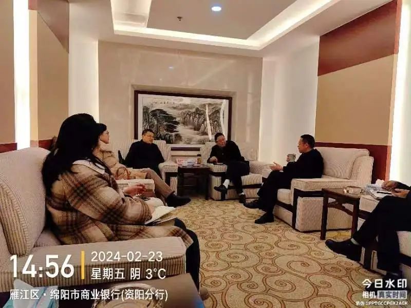 ▶ 2月23日,县委常委、组织部部长胡学彬带队到绵阳商业银行资阳分行洽谈融资相关事宜。县国资金融局局长蒋晓莉,盛安集团、中安集团相关负责人参加。