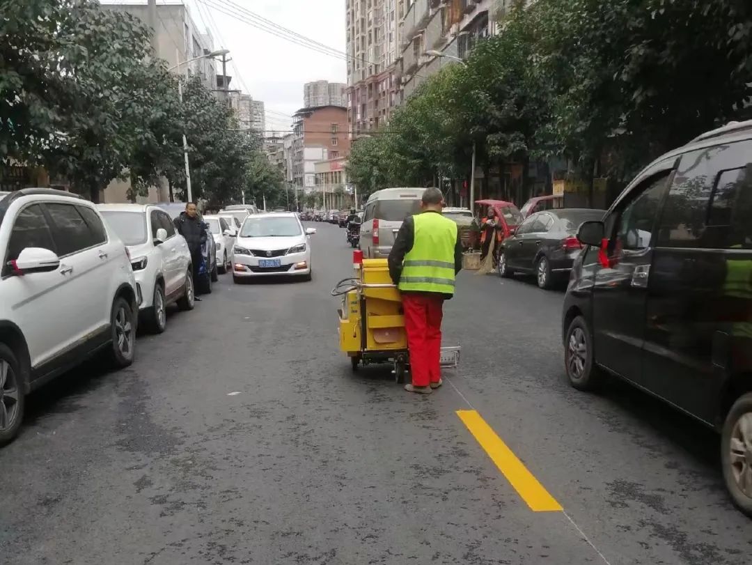 ▶ 2月21日,顺通达公司对杨家湾路边停车位进行划线。