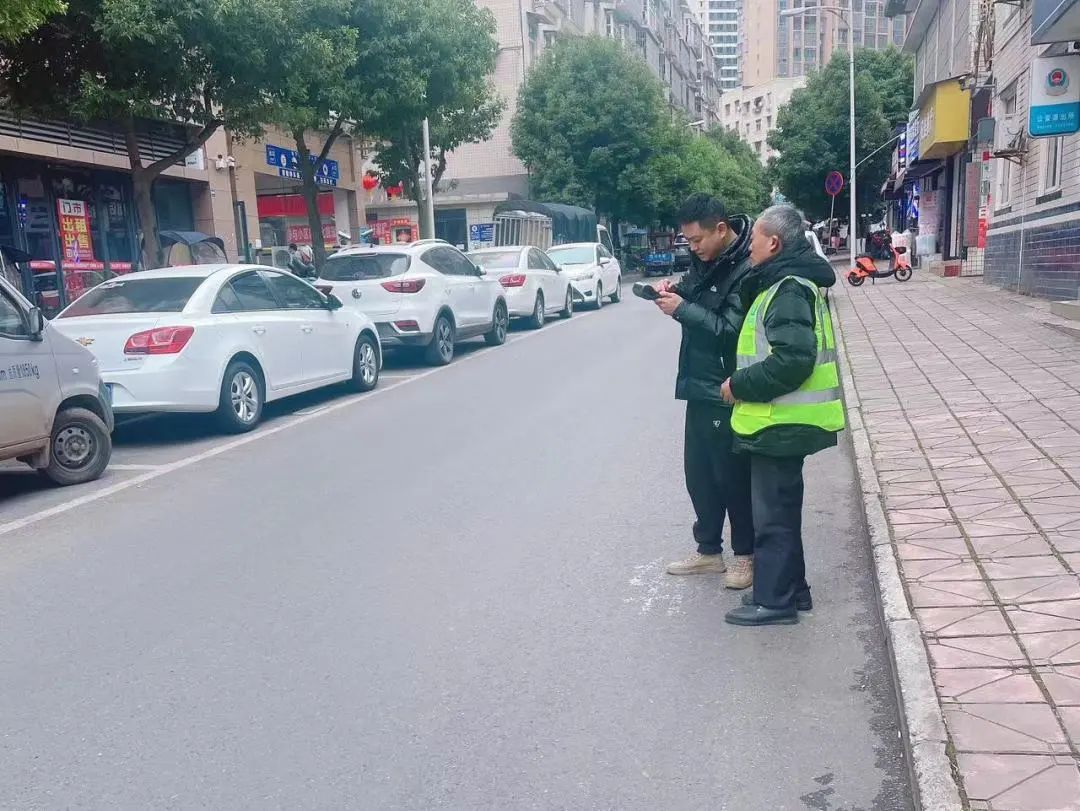 ▶ 2月22日,顺通达公司现场巡查路边停车位收费情况。