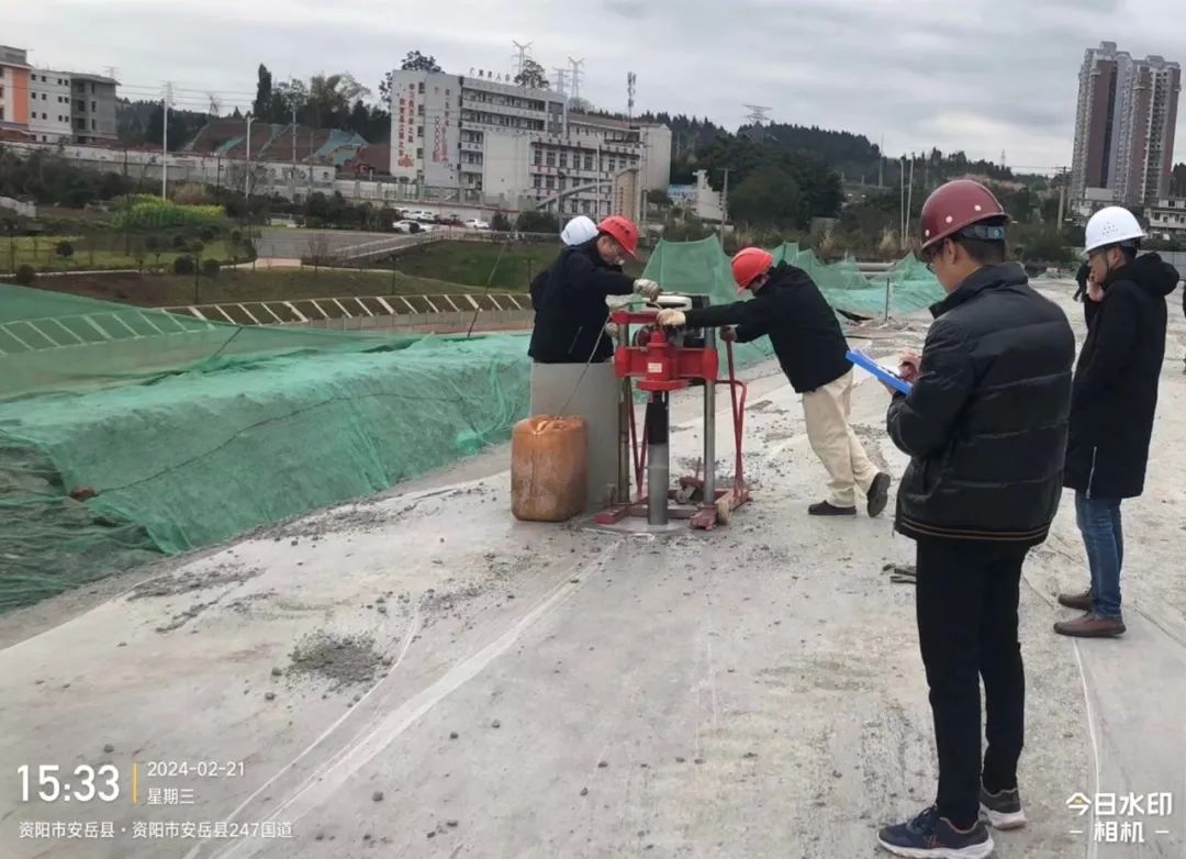 ▶ 2月20日,弘安公司对安岳工业园暨燃气电站供应商砼进行质量检测。