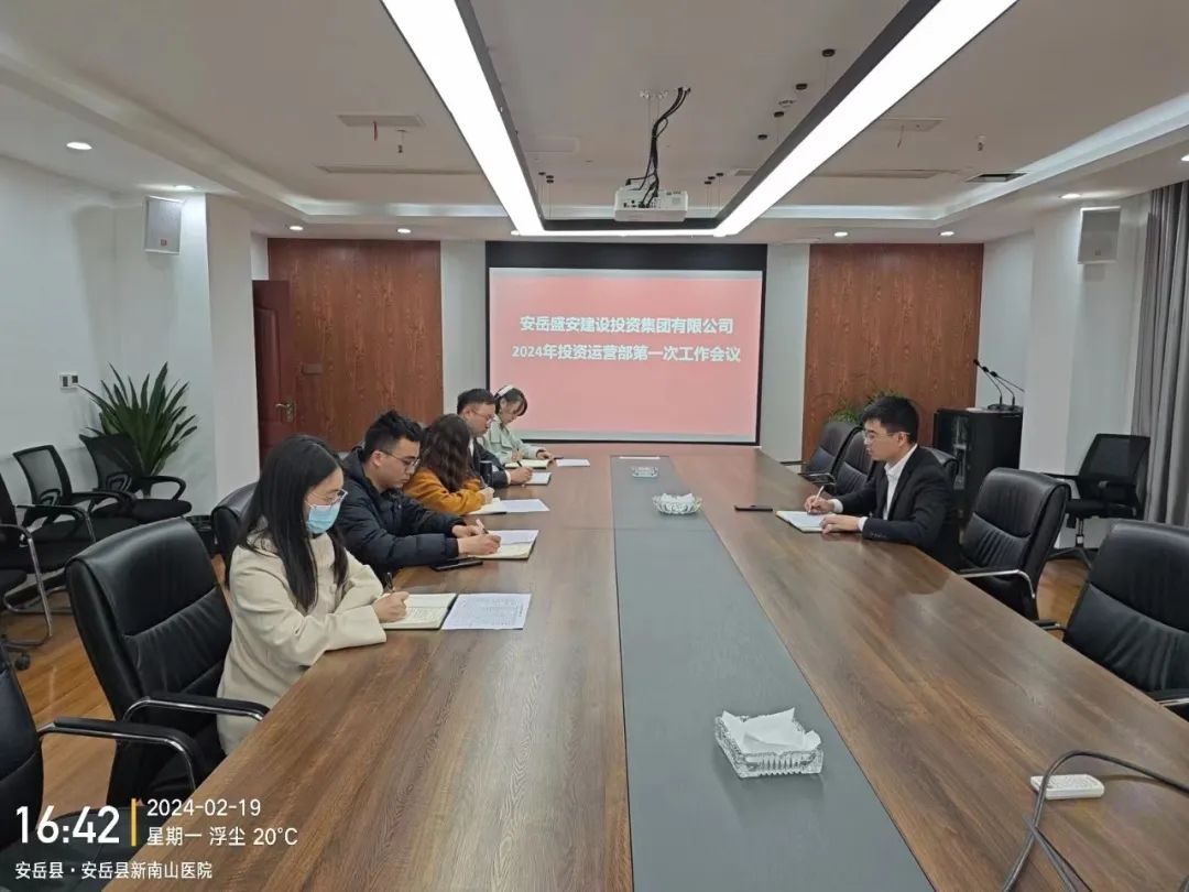 ▶ 盛安集团总经理助理王令主持召开投资运营部2024年第一次工作会,投资运营部全体人员参加。