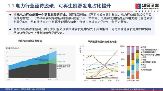 电力行业亟待脱碳,可再生能源发电占比提升