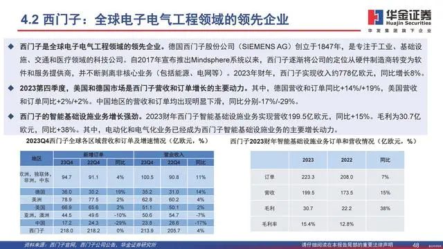 2023第四季度,美国和德国市场是西门子营收和订单增长的主要动力。其中,德国营收和订单同比+14%/+19%,美国营收和订单同比+2%/+2%。中国地区的营收和订单均出现明显下滑,同比分别-17%/-29%。
