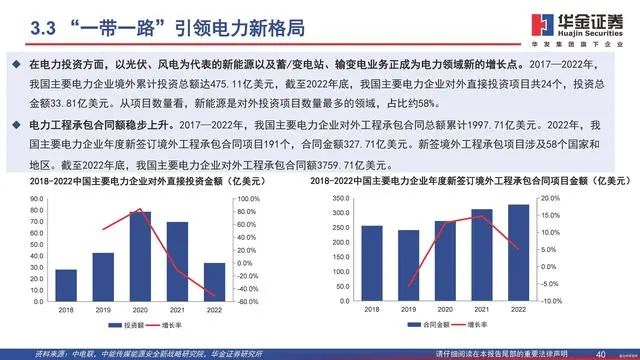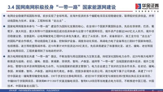 “一带一路”带动中国企业出海。“一带一路”倡议以政府间政策协调沟 通为基础,各方互联互通,金融机构互相合作,自提出以来,不断稳步推 进,已取得了令世界瞩目的成果,为中国企业迈向世界提供了前所未有的 广阔前景。“一带一路”背景下,中国电力设备出口加速,中国电力企业 加快走进新兴市场。