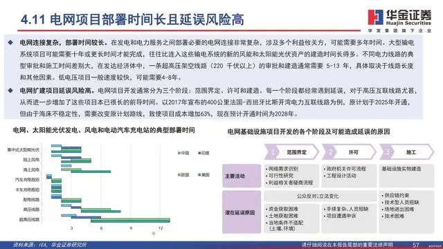 电网发展的延迟阻碍风电和太阳能发电新项目接入电网。根据IEA统计,当前至少有30亿千瓦的可再生能源发电项目正在排队等待并网(其中15亿千瓦的项目已处于后期阶段),相当于2022年太阳能光伏和风力发电新增装机的五倍,这表明电网正在成为净零排放转型的瓶颈。延迟电网投资和改革将大幅增加全球二氧化碳排放量,减缓能源转型速度,导致1.5°C的目标遥不可及。