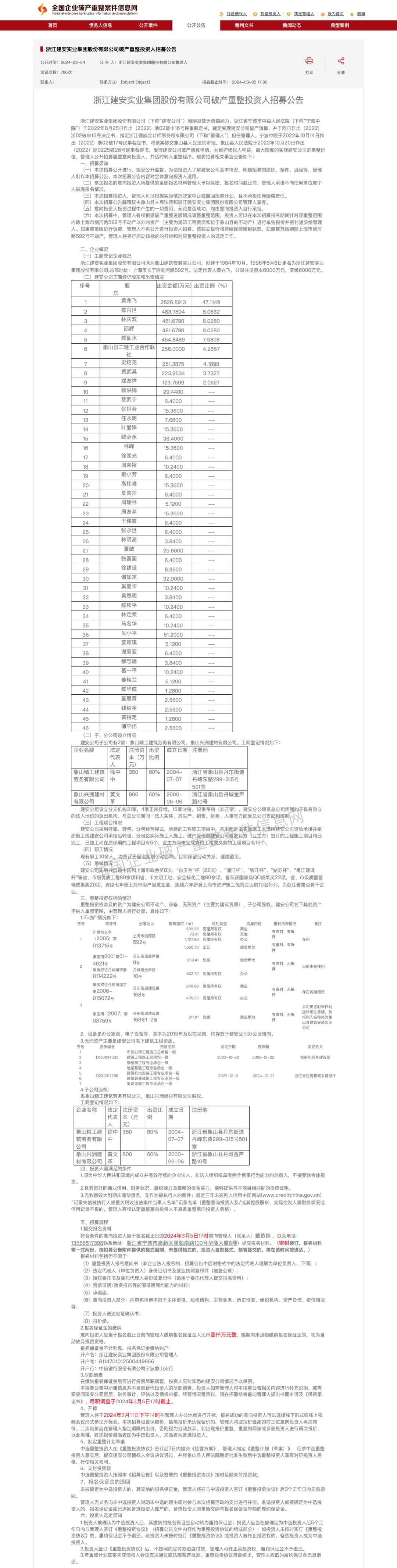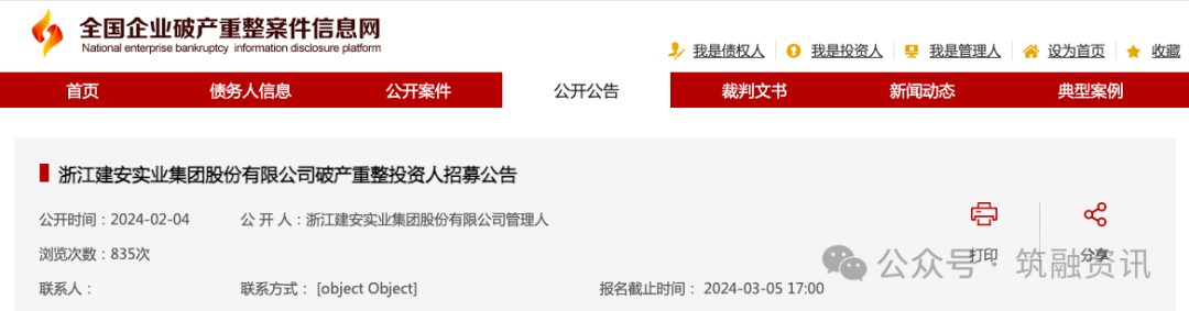 近日浙江建安实业集团股份有限公司自2023年1月18日后,再次发布招募投资公告。