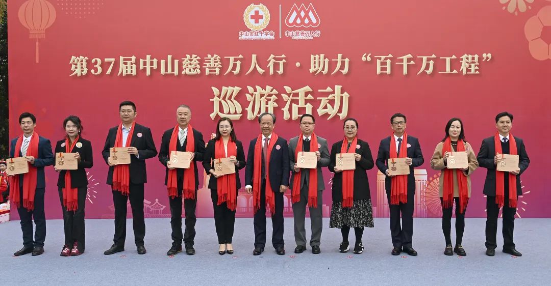 起步仪式上,市领导为获得2023年度中山市慈善纪念章金菊奖的个人、企业(组织)和慈善项目颁发金菊奖章。其中,7个企业(组织)获颁金菊奖章,小榄占了5个,包括由小榄镇商会发起的广东省菊城公益基金会;15个企业(组织)获颁银菊奖,小榄占14个;38个企业(组织)获颁铜菊奖,小榄占19个。