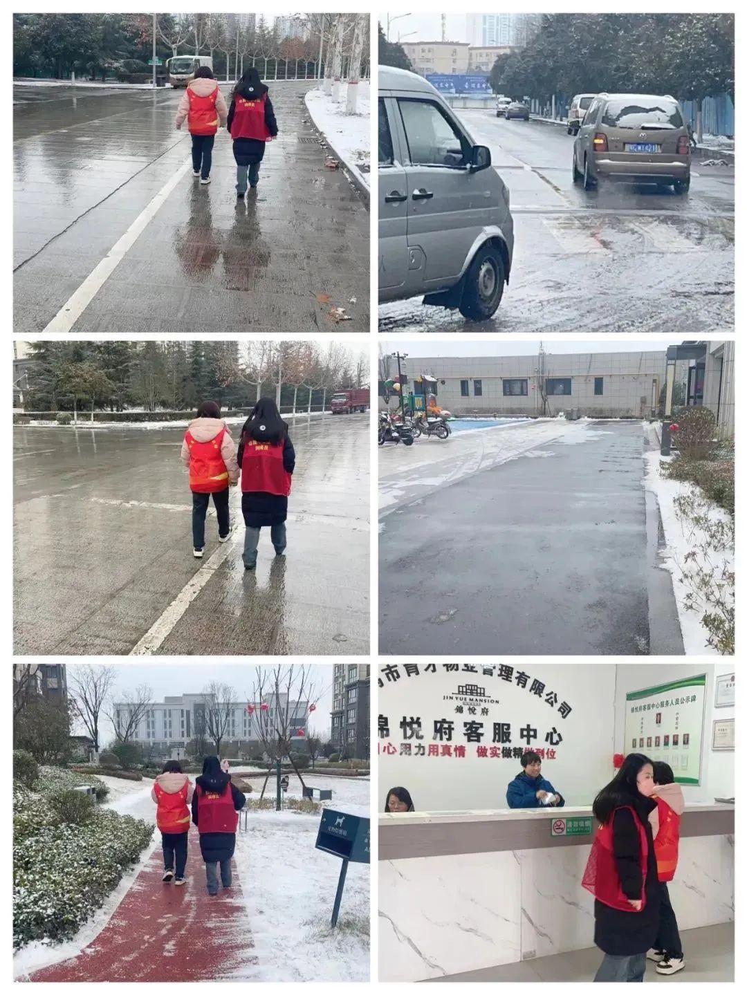 一、2月21日下午,社区工作者对辖区内小区、道路的积雪结冰情况进行巡查。