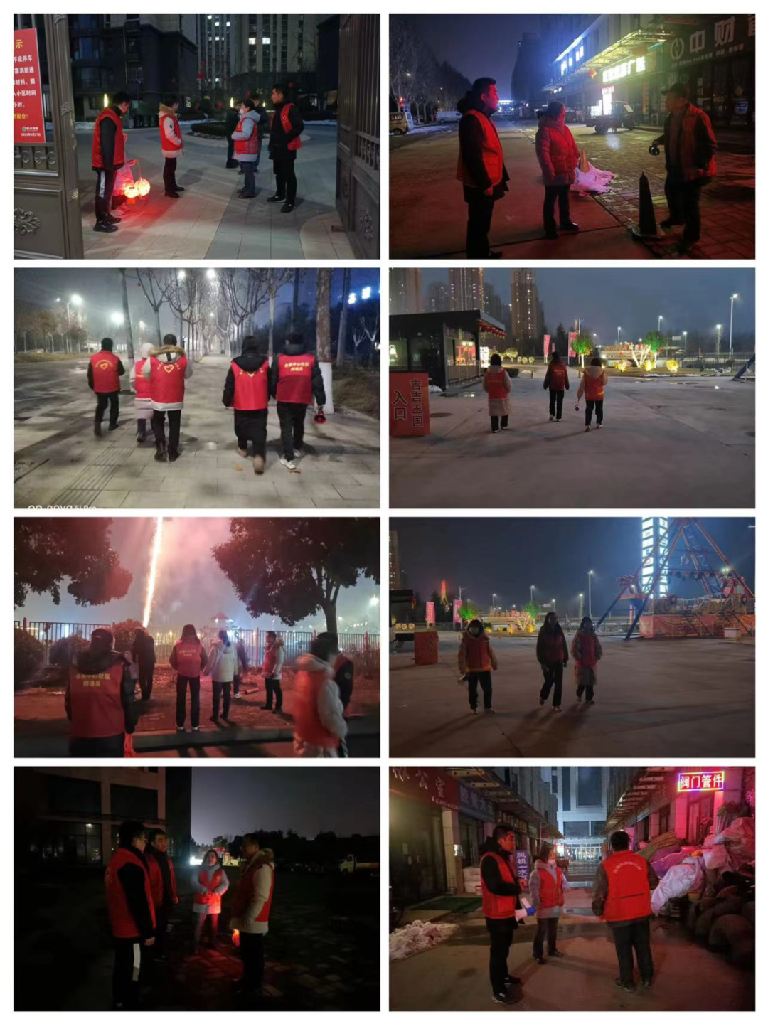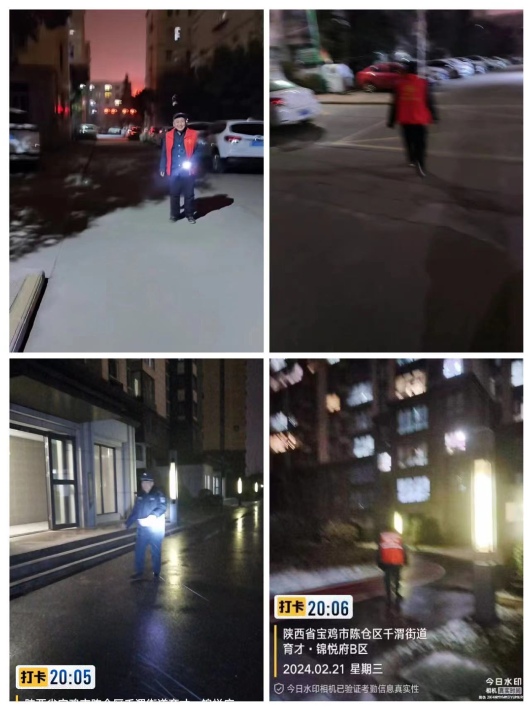 七、2月24日晚上,千渭街道纪工委书记晁宝锋、社区工作人员及志愿者进行禁烟禁放安全巡查。