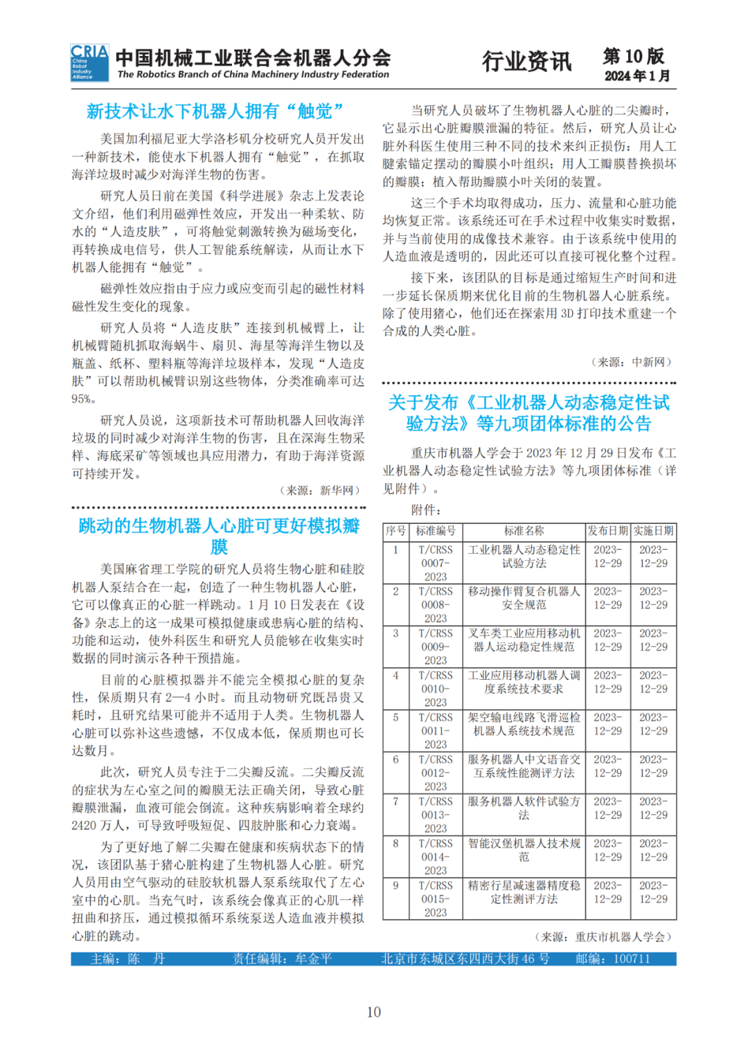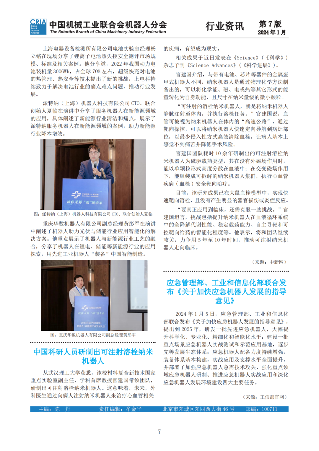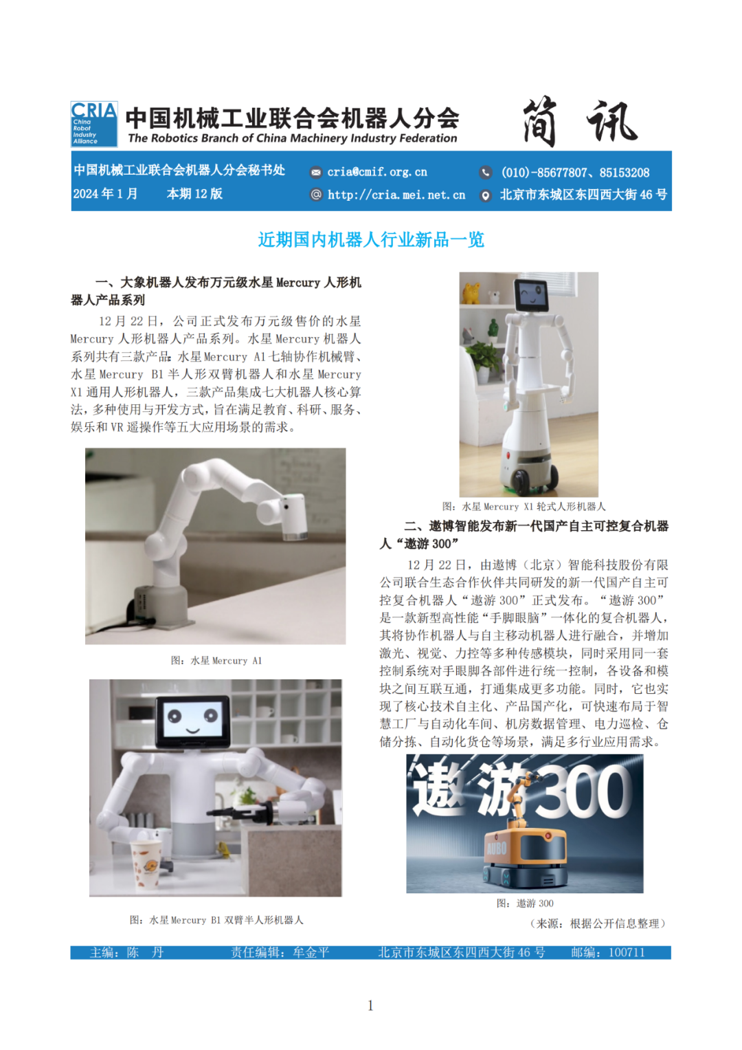 《中国机械工业联合会机器人分会简讯》2024年1月