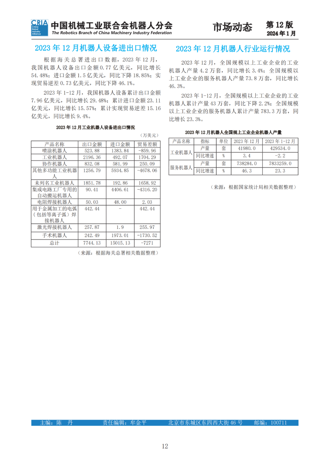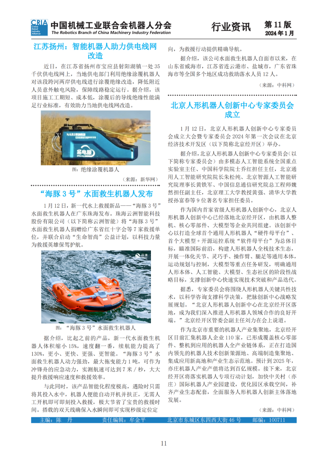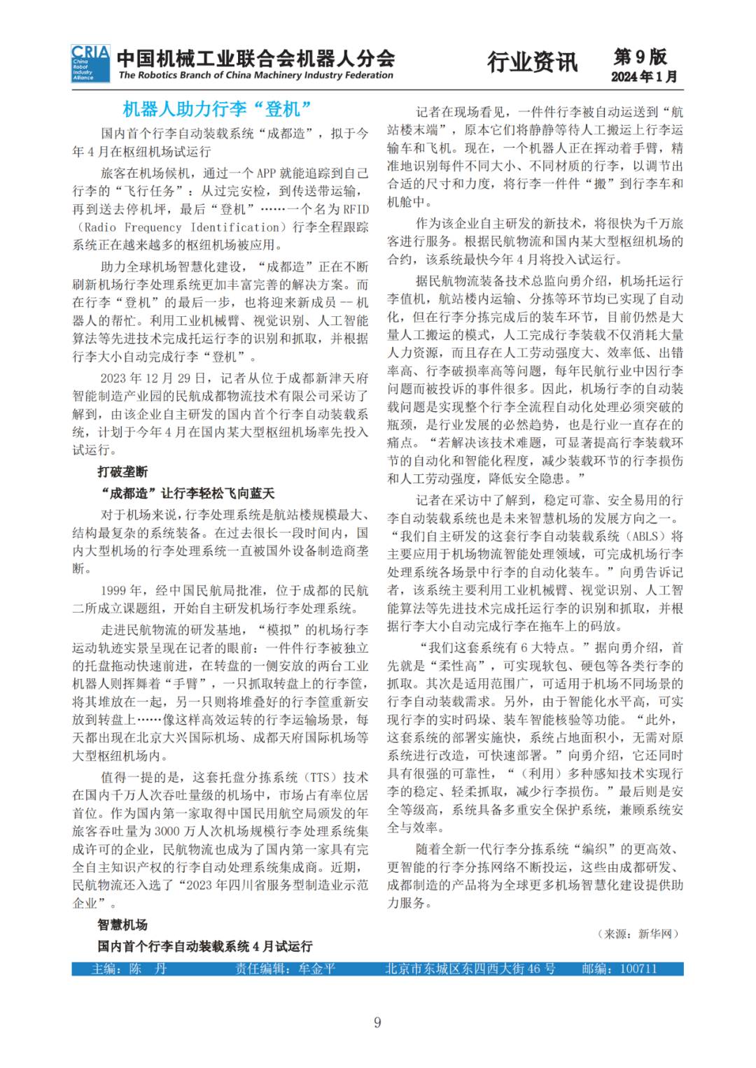 《中国机械工业联合会机器人分会简讯》2024年1月