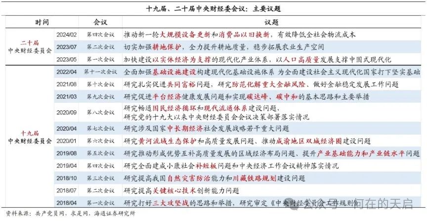 中央财经委员会是党中央领导经济工作的重要制度安排,责任重大,作用重要。党的十九大以来,中央财经委员会深入研究一批事关根本和长远的重大问题,发挥了战略引导作用。从以往会议的议题看,2018年4月“三大攻坚战”、2020年9月“双循环”、2021年3月“平台经济”、“双碳建设”、2021年8月“共同富裕”、2023年5月的“现代化产业体系”对我国宏观经济产生了深远影响,对于理解中长期的政策方向意义重大。