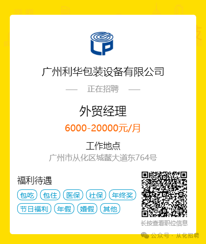 【2月26日】从化企业大量招聘总汇(免费发布招聘)