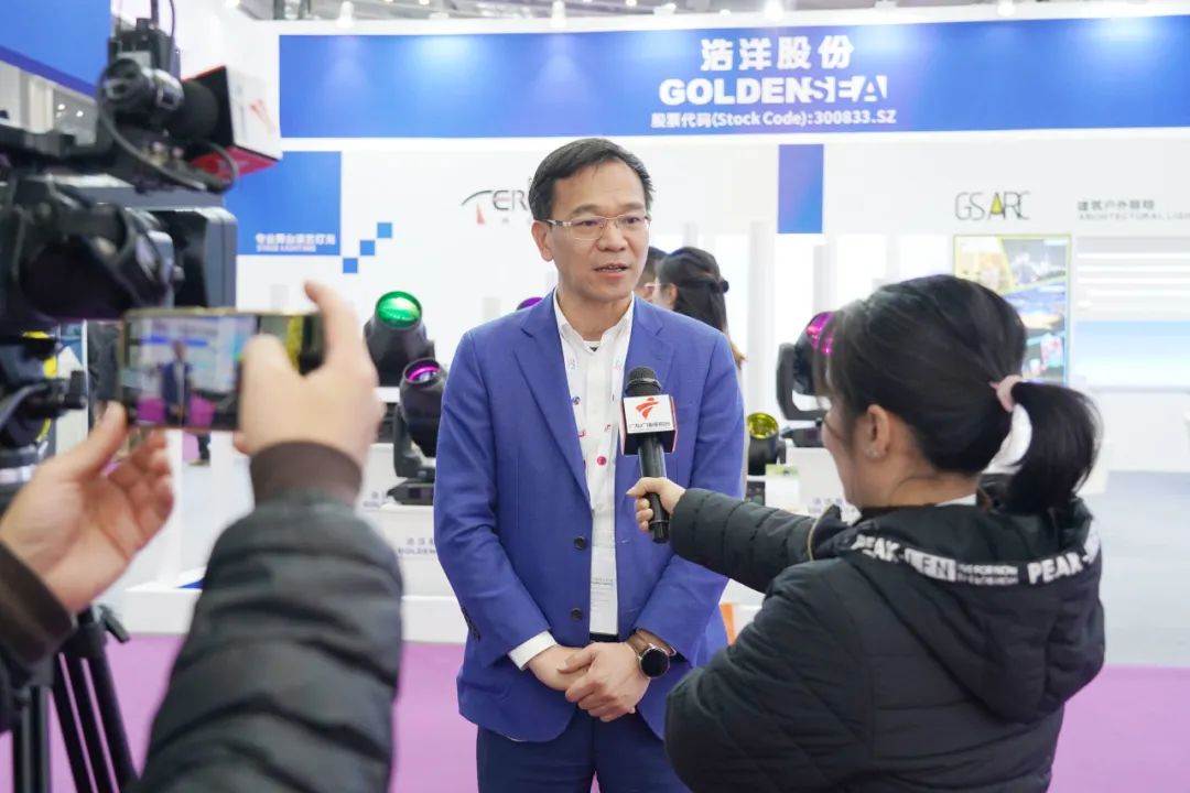 蒋伟楷董事长接受广东电视台采访时表达了对本次展会的期许,并希望与全世界的客户朋友、专家老师们加强交流,共创演艺灯光行业的美好未来!