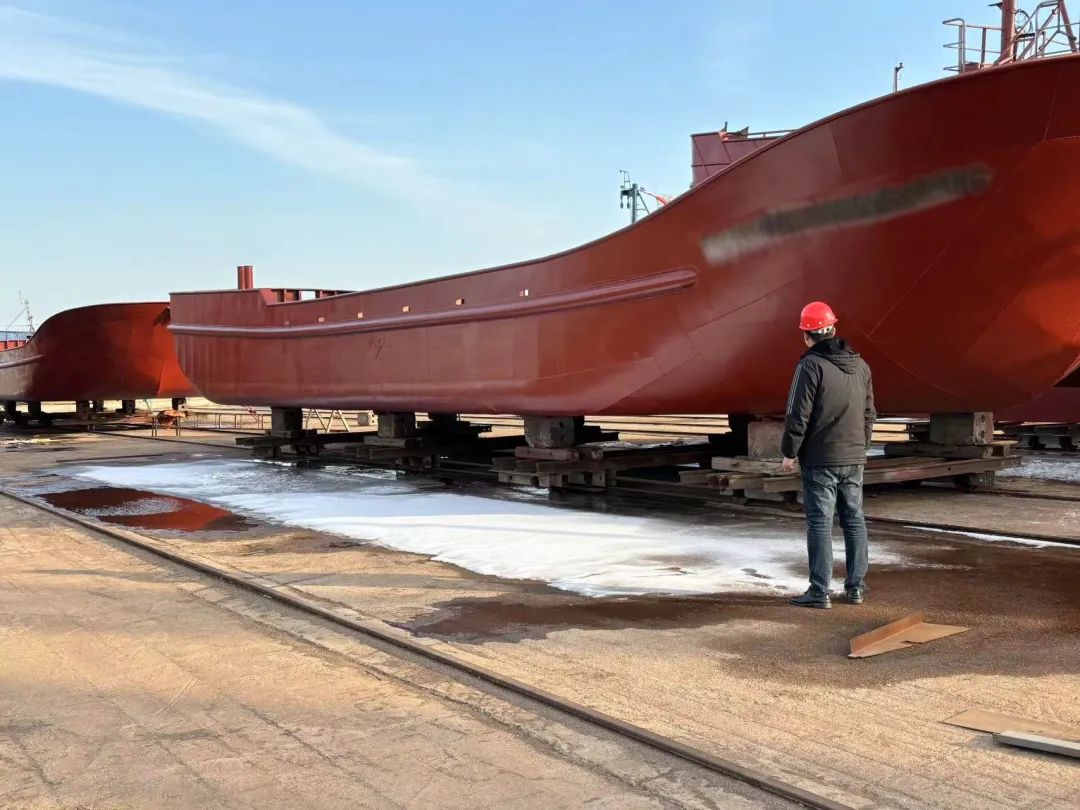 海洋发展公司到日照金航渔业公司查看船舶建造进度。