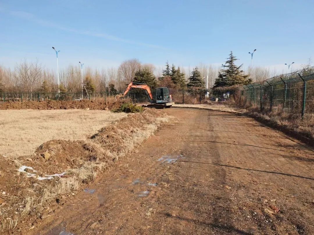 海洲湾工程公司进行岚山机场巡场道路路基找平作业。