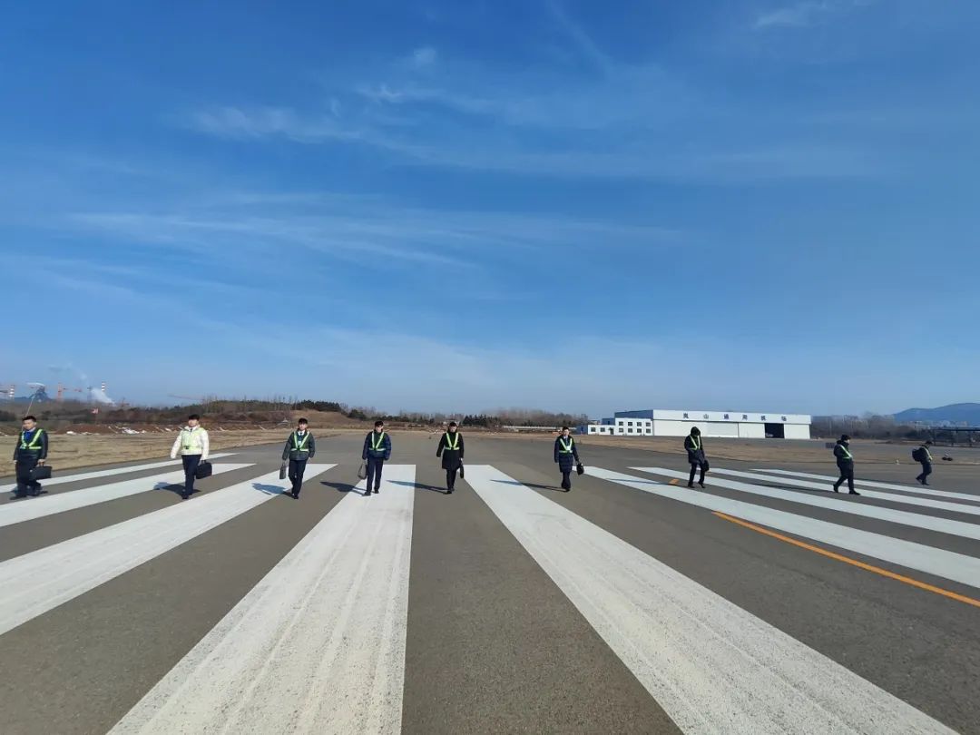 岚山通用机场公司利用训练间隙,为保障飞行准备,对机坪、跑道及滑行道进行徒步检查。