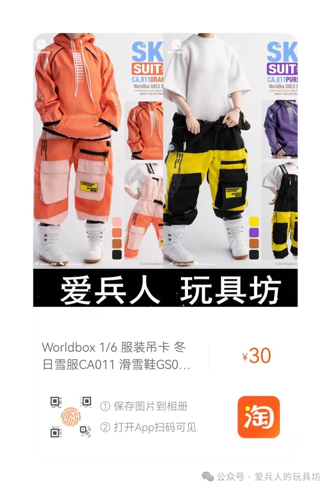 Worldbox 1/6 服装吊卡 冬日雪服CA011 滑雪鞋GS003 接单