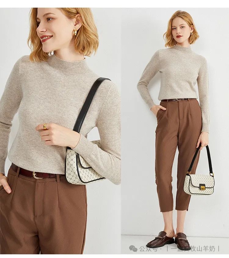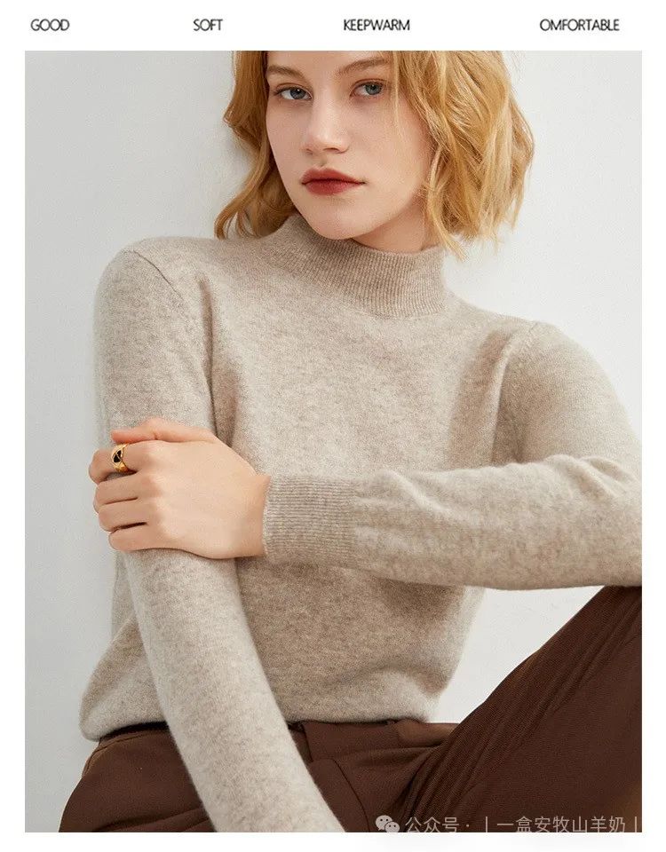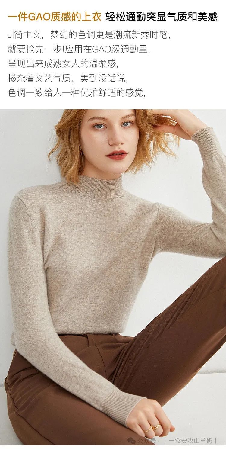 【袁泉同款意大利轻奢品牌半高领羊绒衫】
