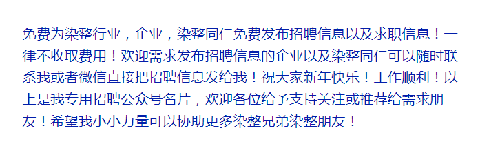 本号招聘及求职信息收集于群内、印染企业人事及粉丝吩咐帮忙发布!