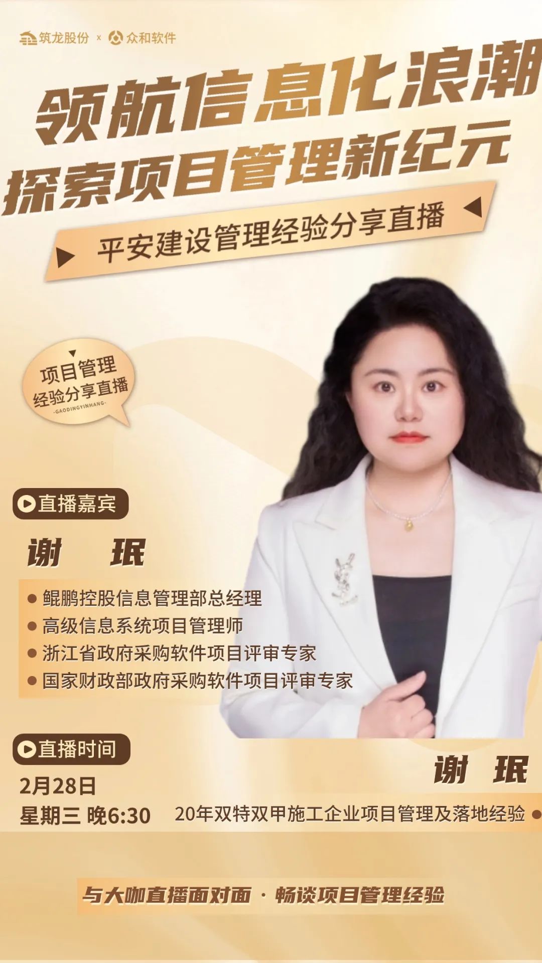 为了帮助更多企业解决项目管理方面的困扰,2024年2月28日,建设通特别邀请了来自平安建设具有20年项目管理经验的谢珉谢总莅临建设通视频号直播间,在线开展《平安建设管理经验分享直播》公开课;