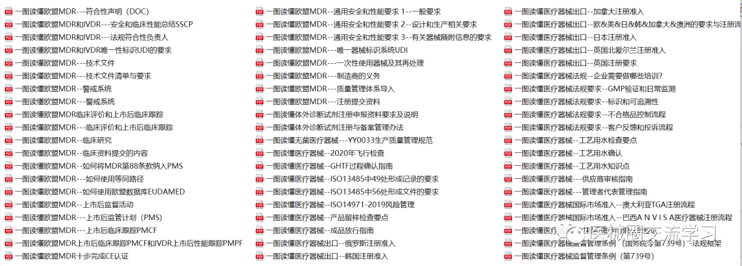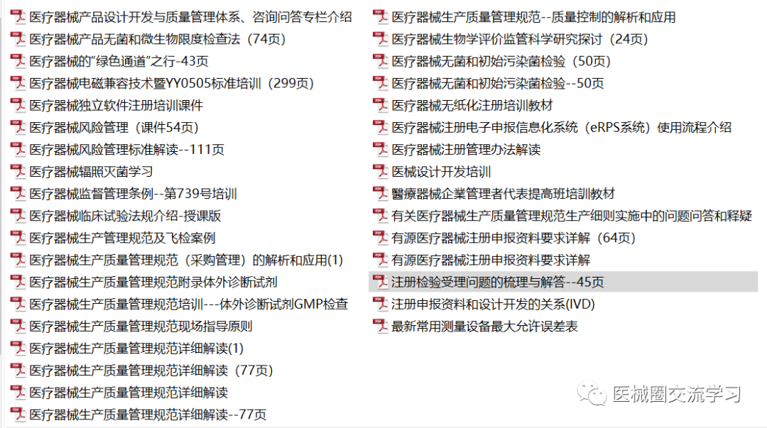 资料库9000+份,加入会员即可入群打包快捷下载,持续新增,共享资料包括培训教程(包含监管机构培训课件+原创培训课件)+国内/国际/ISO/GB/YY法规标准+注册/体系/研发/验证/管理模板等