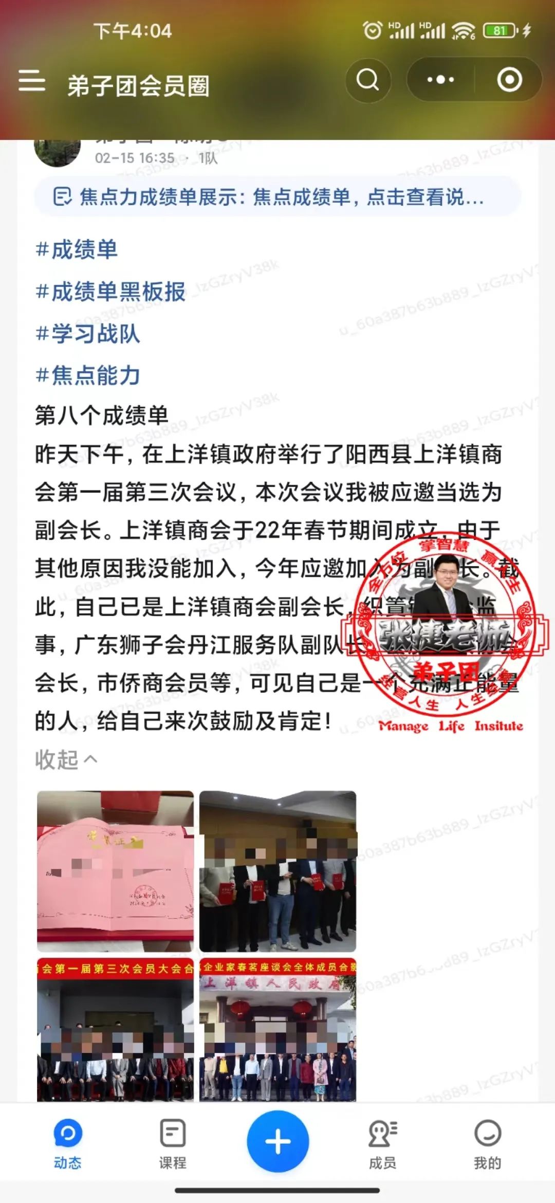 【弟子团成绩单分享】今年应邀当选为商会副会长,可见自己是一个充满正能量的人,给自己来次鼓励及肯定!