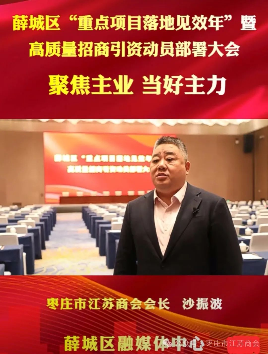 会后枣庄市江苏商会会长沙振波接受了薛城区融媒体的专访。