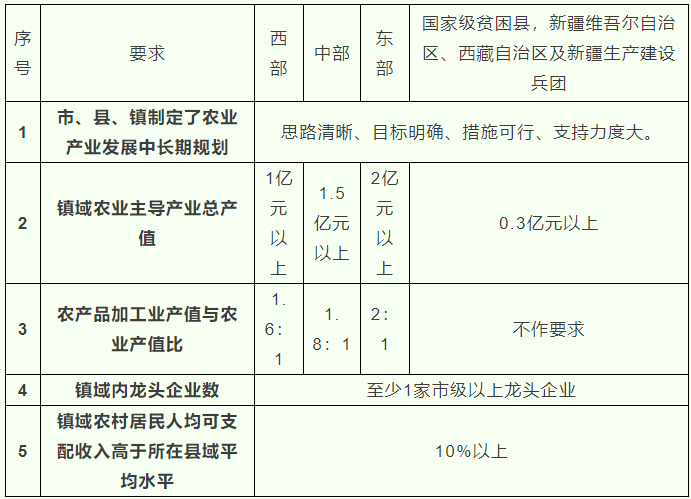 申请农业产业强镇建设的镇(乡)应满足以下要求: