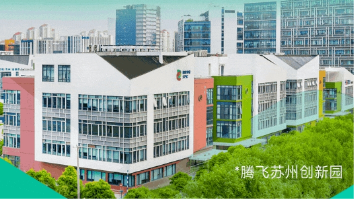 腾飞苏州创新园位于苏州工业园区独墅湖科教创新区,占地10公顷,是一个集"工作、生活、休闲、学习”于一体的综合科技园区,周围高校林立,拥有完善的商业及娱乐配套设施,24小时的休闲天地、无处不在的网络和户外绿色空间,为跨业交流与学习激发创新灵感。园区设计融入校园风格,是苏州首个获LEED金奖认证的科技园。