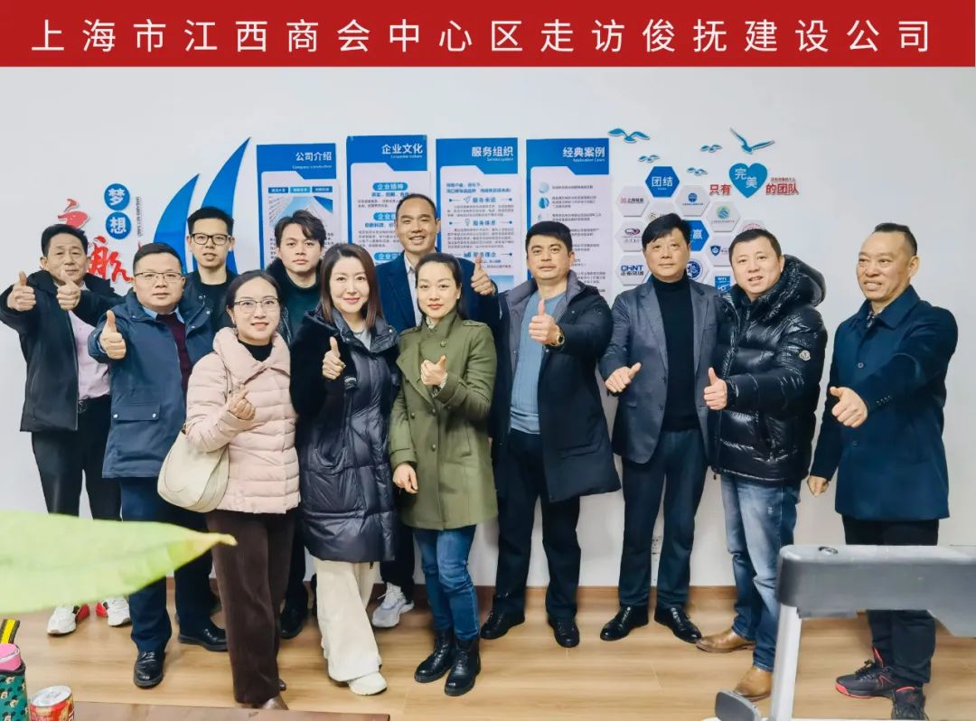 2024年2月22日,上海市江西商会中心区区长、常务副会长、科技金融分会会长邹童,常务副会长王君,副会长陈清平、聂琴,副监事长杨凯峰,中心区联络员、理事徐小华,理事向耍贵、鹿海霞、黄瑞泉、周福孙、刘兰芳,赴上海市松江区茸梅路345弄3号楼308室走访理事单位上海俊抚水务公司总经理章欢平。