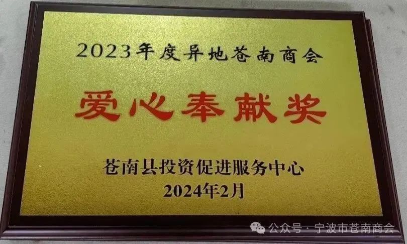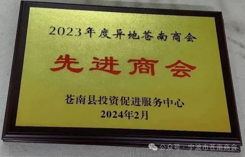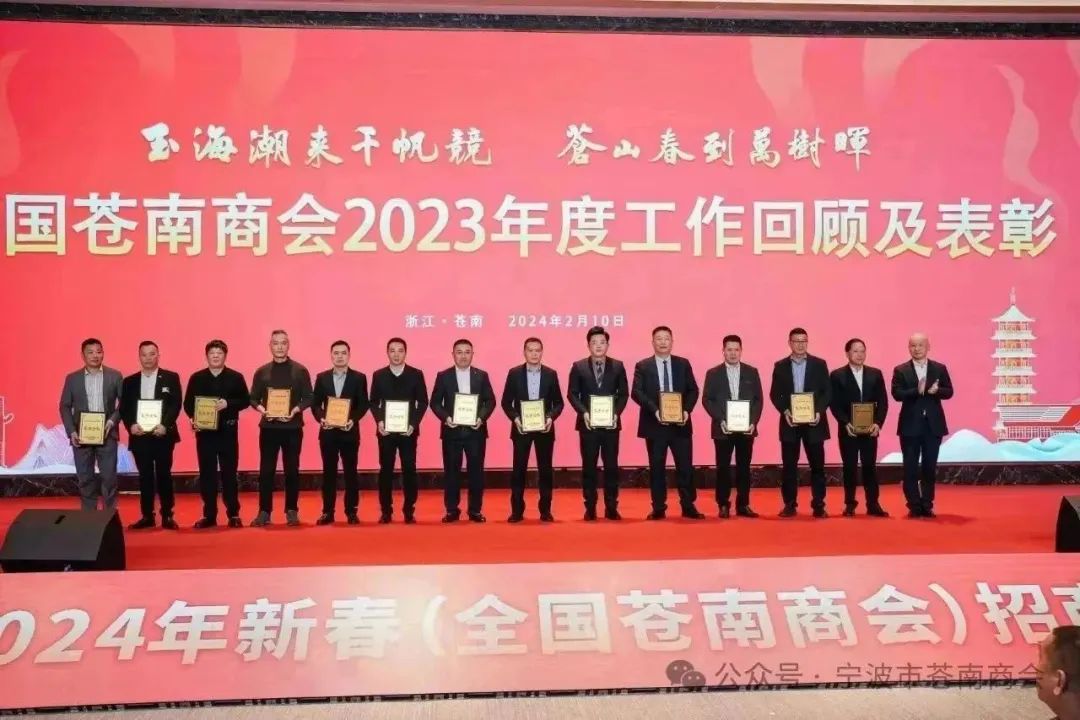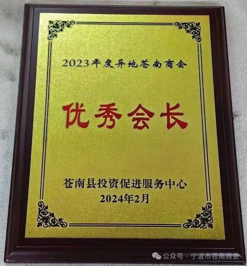 在本次大会上,宁波市苍南商会会长戴安东荣获“2023年度异地苍南商会优秀会长”荣誉称号。宁波市苍南商会荣获“2023年度异地苍南商会先进商会”“2023年度异地苍南商会爱心奉献奖”荣誉称号。