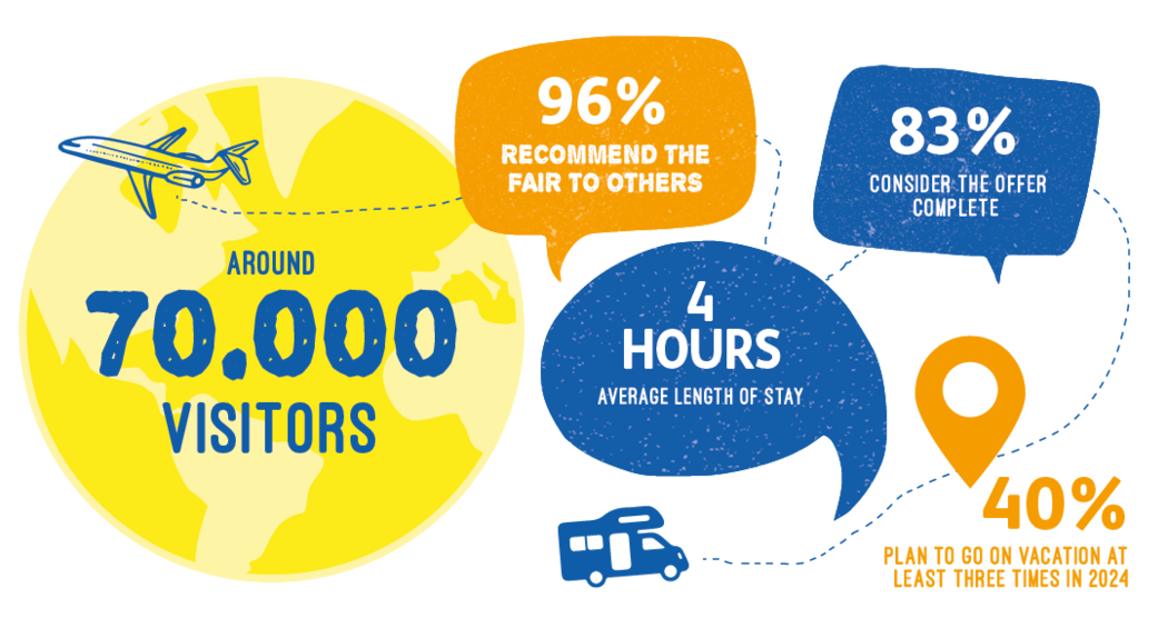 这是斯图加特展览公司与汉堡会议展览公司密切合作,第二次举办该展览会。“我们再次对旅行、房车和自行车度假以及其他形式的旅游业产生了浓厚的兴趣。有时,我们简直被观众挤爆了。即使在工作日,展厅也是座无虚席。”汉堡国际会展中心首席执行官 Heiko M. Stutzinger 说,“这也更加坚定了我们与斯图加特展览公司密切合作举办德国汉堡国际旅游及房车展览会的决定,我已经开始期待 2025 年的展会了。”