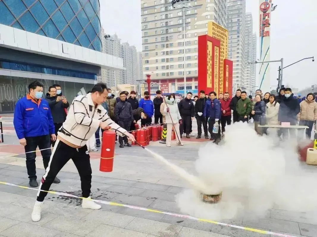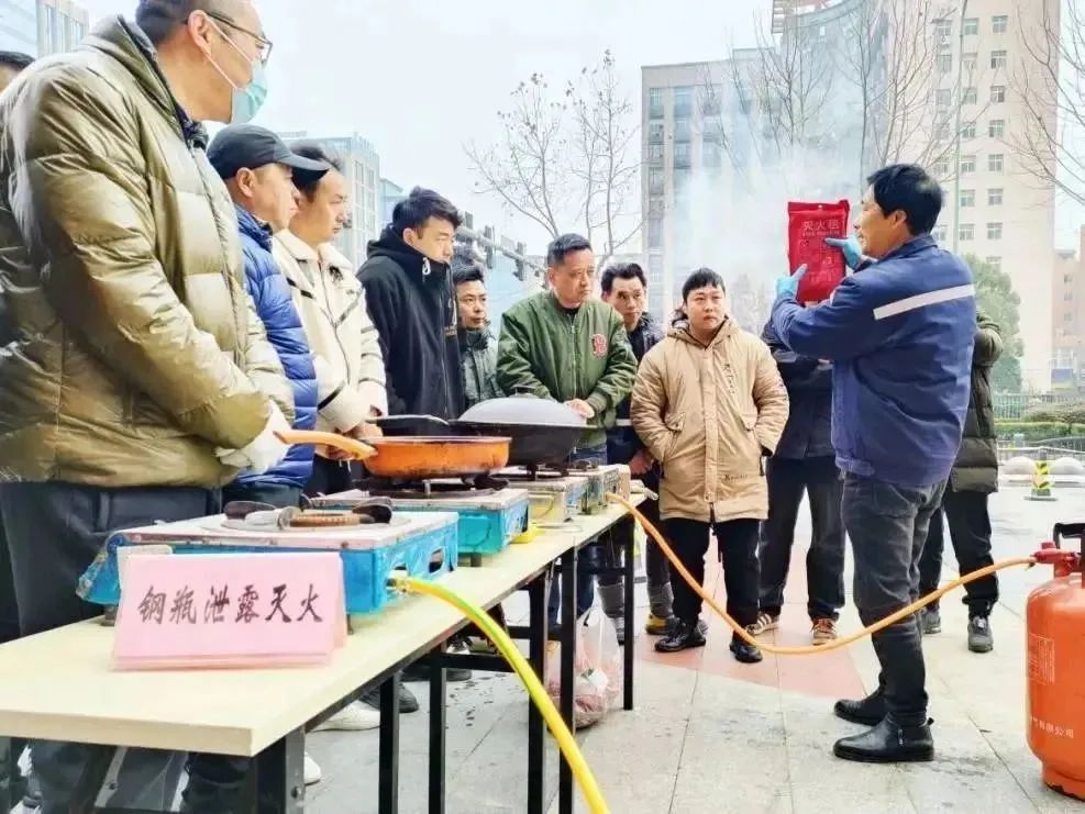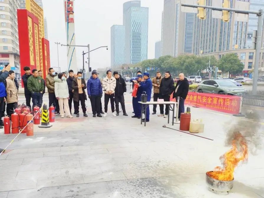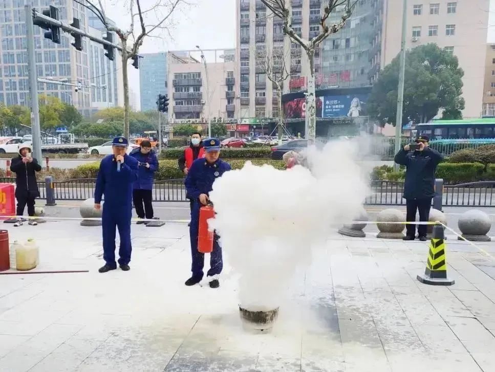 上午9点,在嘉兴南湖万达北广场,专业人员现场演示了钢瓶泄漏起火、油桶起火、油锅起火的应急处置流程,参训人员在专业人员的指导下依次完成了灭火实操。