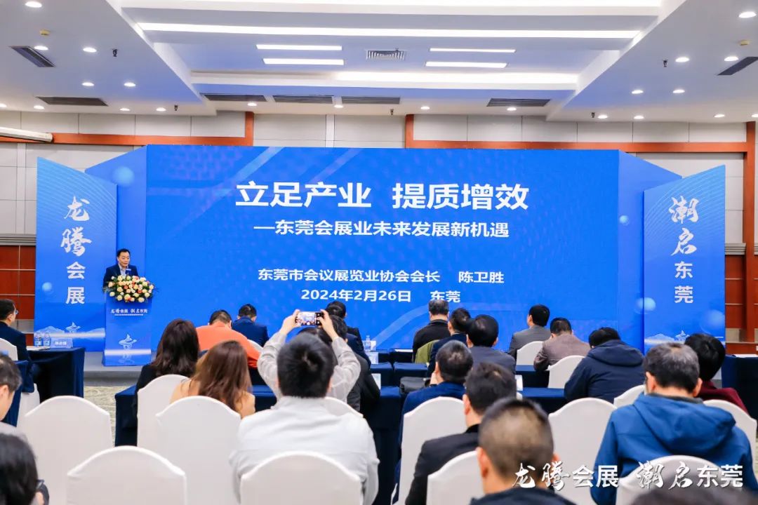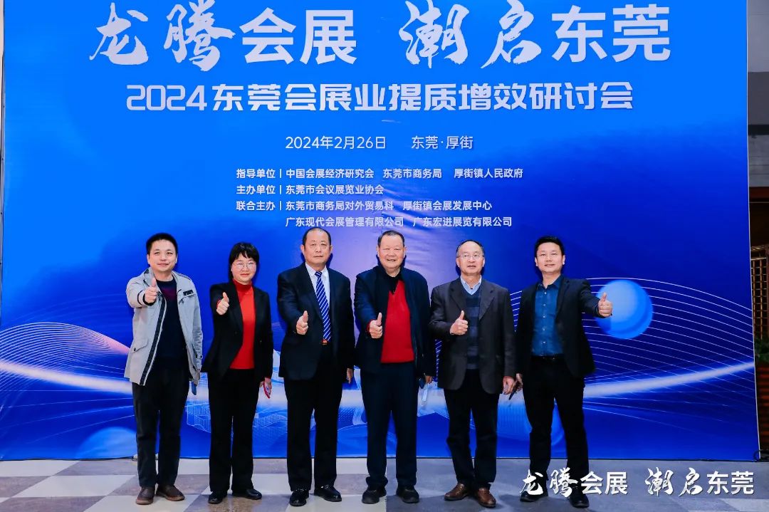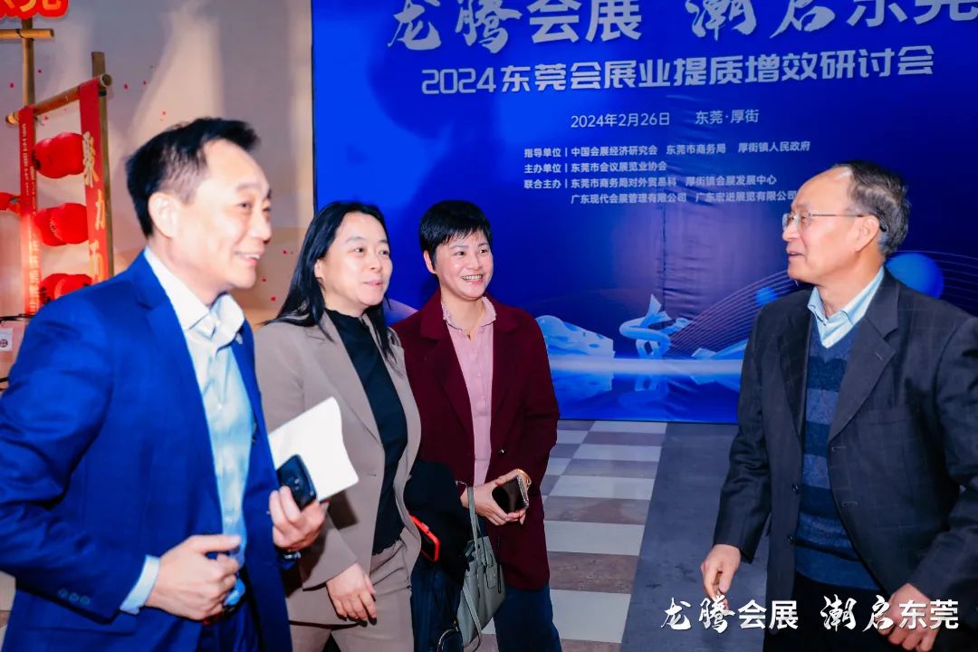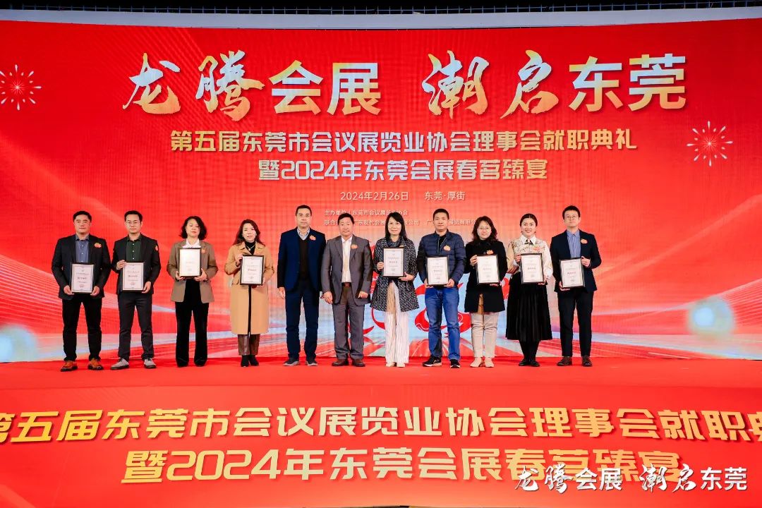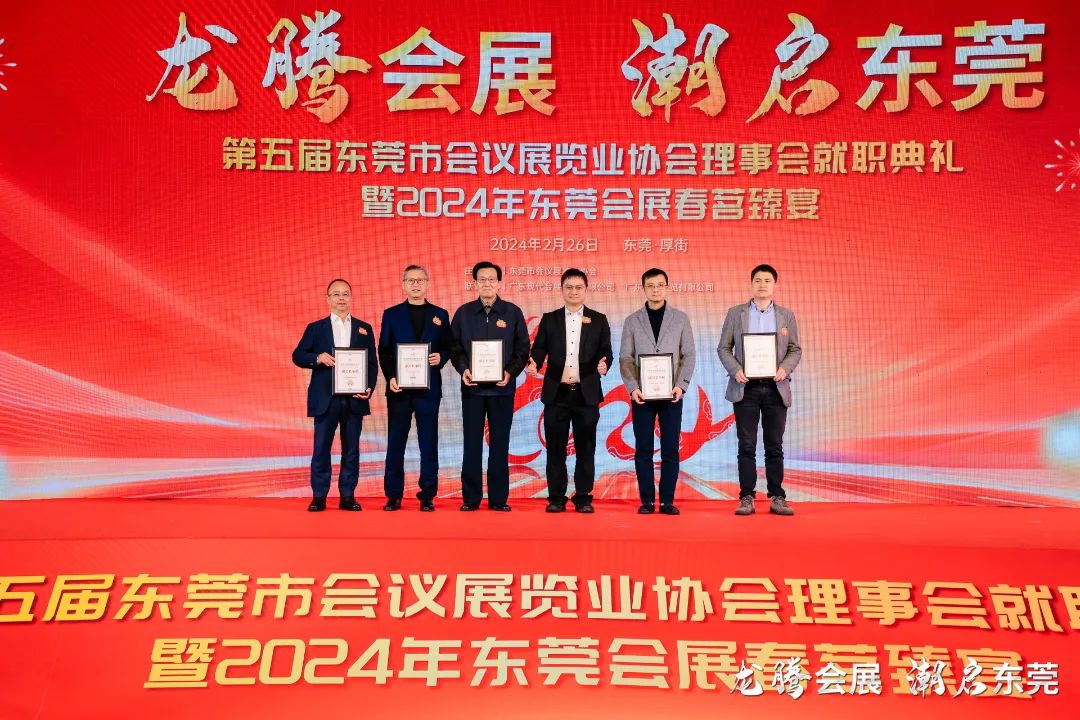 2月26日,主题为“龙腾会展,潮启东莞” 的2024 东莞会展业提质增效研讨会、第五届东莞市会议展览业协会理事会就职典礼暨 2024 年东莞会展春茗臻宴在东莞厚街 • 广东现代国际会展中心成功举办。活动由中国会展经济研究会、东莞市商务局、厚街镇人民政府指导,东莞市会议展览业协会主办,东莞市商务局对外贸易科、厚街镇会展发展中心、广东现代会展管理有限公司、广东宏进展览有限公司等联合主办。