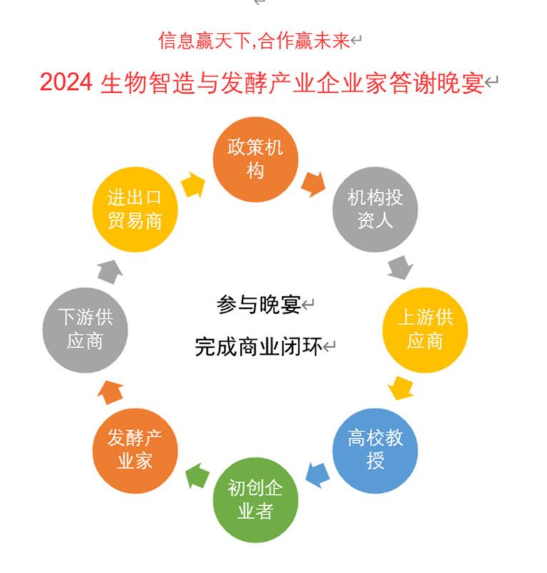在组委会多方不懈努力下,慎重决定,在2024第12届国际生物发酵产品与技术装备展览会(济南)同期举办,寻找优质合作伙伴,2024生物智造与发酵产业企业家答谢晚宴!于2024年3月6日17:00在美悦云禧酒店举办,邀请生物发酵产业同仁及专家教授亲临现场,抱团取暖、相互切磋,共同度过美好夜晚。扫码预约报名