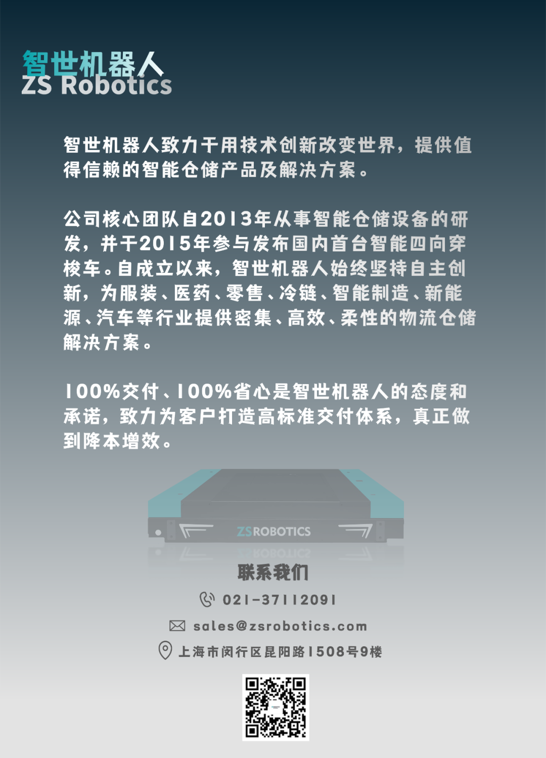 智世机器人作为一家值得信赖的仓储机器人公司,凭借着高品质的仓储产品和可靠的交付能力,为客户提供四向穿梭车密集仓储整体解决方案,全面提升仓储物流资源调配空间和效率,成功助力客户打造“黑灯仓库”。