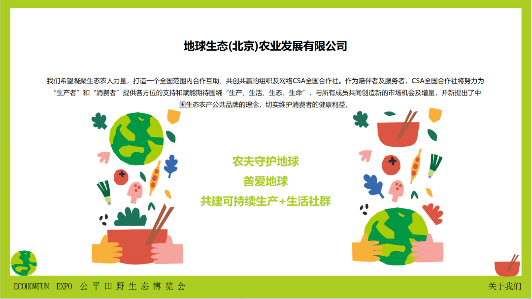 ”公平田野生态博览会“是一个以健康有机、新生态、促进乡村振兴为原则,传播有机新生活方式的生态农人生态博览会。
