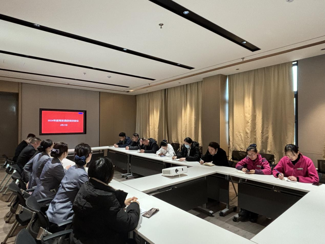 海发酒店公司召开会议,传达集团高质量发展会议精神,并进行员工培训。