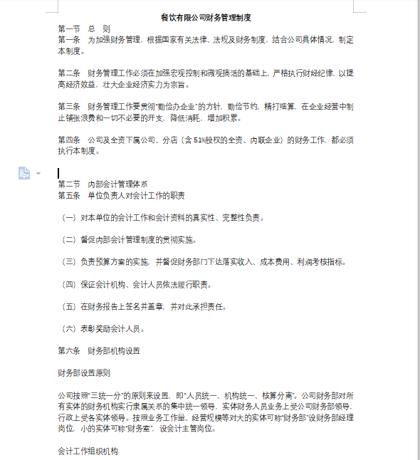 第一条 为加强财务管理,根据国家有关法律、法规及财务制度,结合公司具体情况,制定本制度。