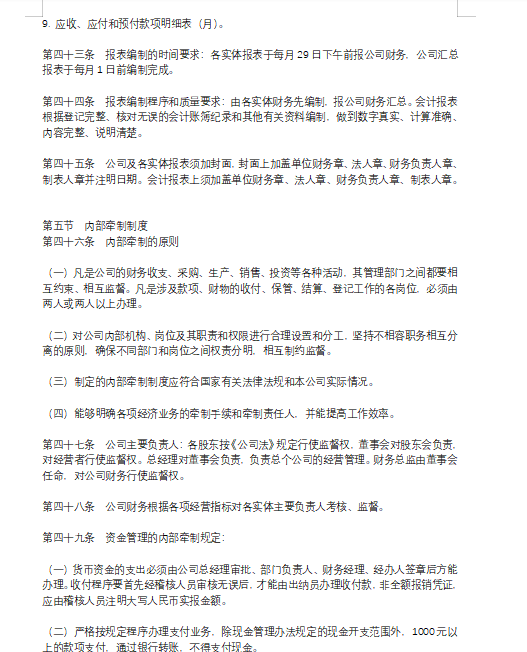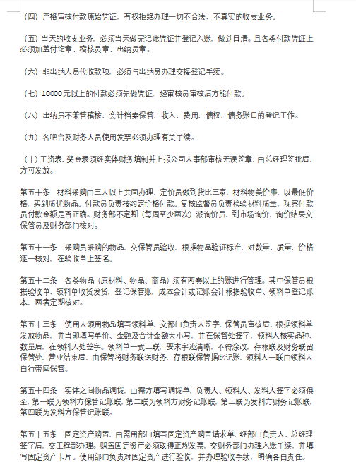 第四条 公司及全资下属公司、分店(含51%股权的全资、内联企业)的财务工作,都必须执行本制度。