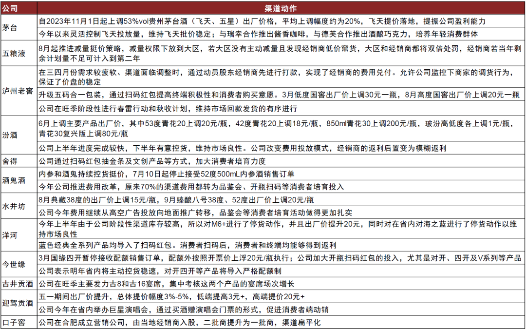 图表:主要白酒企业渠道动作