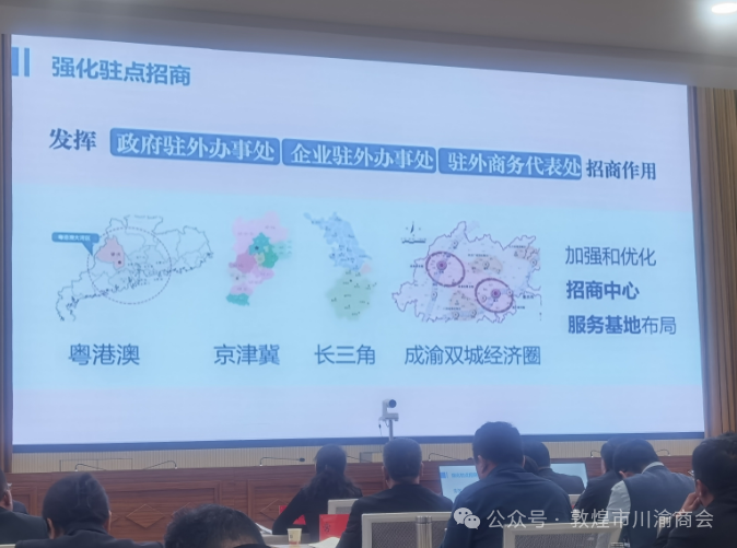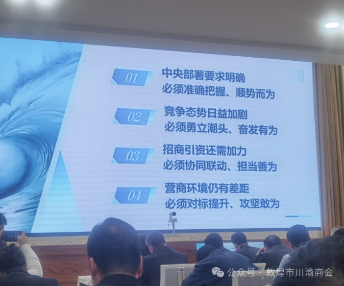 会议通报了有关情况,解读了有关文件。兰州市、金川区、省法院、酒泉市、庆阳市、省商务厅负责人先后作了发言。敦煌市川渝商会受邀参加本次全省招商引资暨优化营商环境大会-敦煌分会场会议。