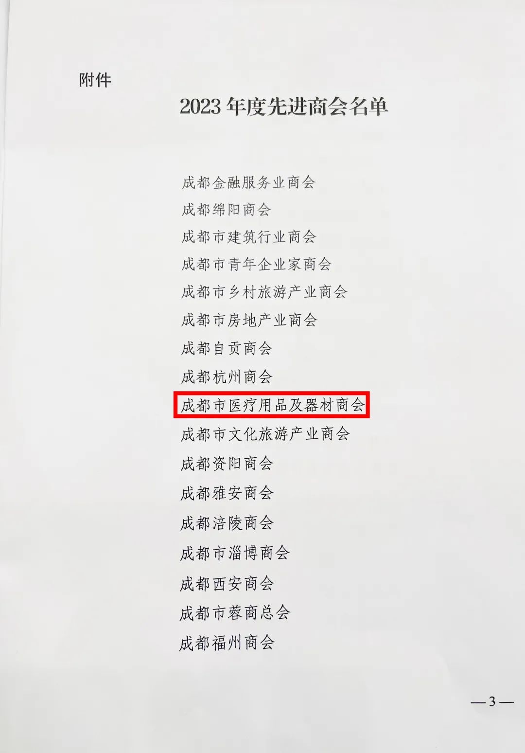 2024年2月27日,成都市工商联(总商会)十三届三次执委会议在四川省委党校彭州校区知新楼湔江报告厅顺利召开。大会现场,成都市工商联对全市2023年度考核等级优秀的先进商会予以通报表彰,成都市医疗用品及器材商会荣获2023年度先进单位!
