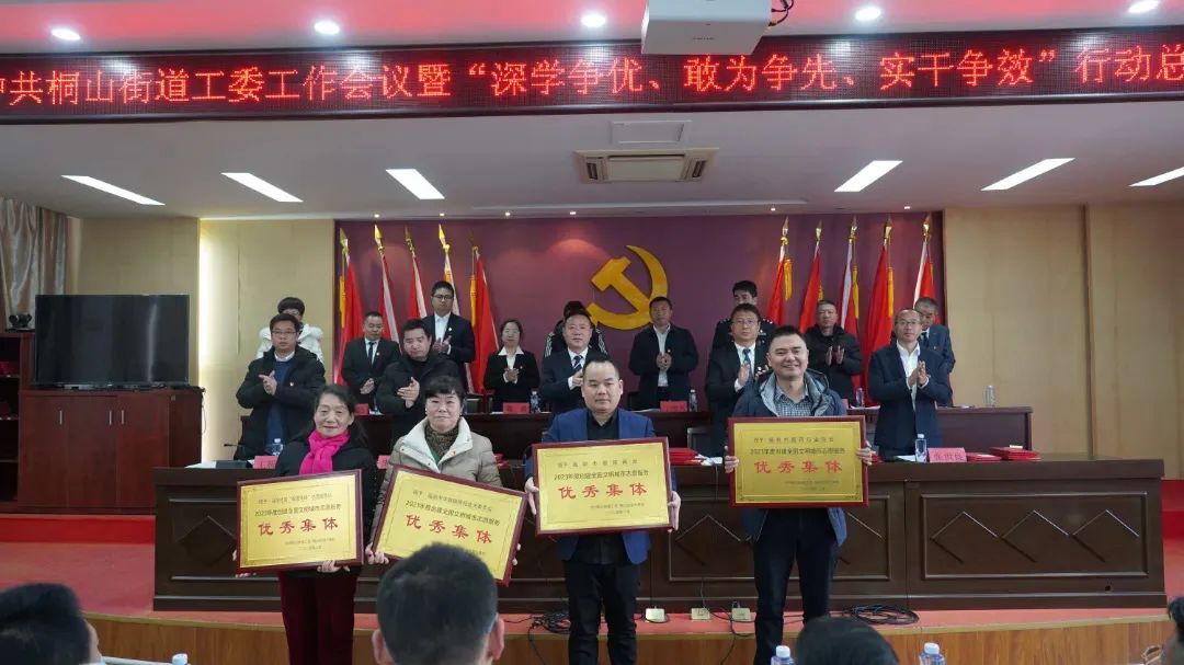 2月26日,桐山街道召开2024年党工委工作会议暨“深学争优、敢为争先、实干争效”行动总结部署会。会上,桐山街道党工委班子成员对获得2023年度工作综合表现、发展壮大集体经济、平安建设、信访工作、国防动员、创建全国文明城市、重点项目重点工作等表现突出的集体和个人进行颁奖,激励大家以先进为榜样,踔厉奋发、勇毅前行,不断开拓桐山街道各项工作新局面。福鼎市服装商会荣获"2023年度创建全国文明城市志愿服务优秀集体"称号,这是对商会积极参与志愿服务、助力文明城市建设的高度认可。