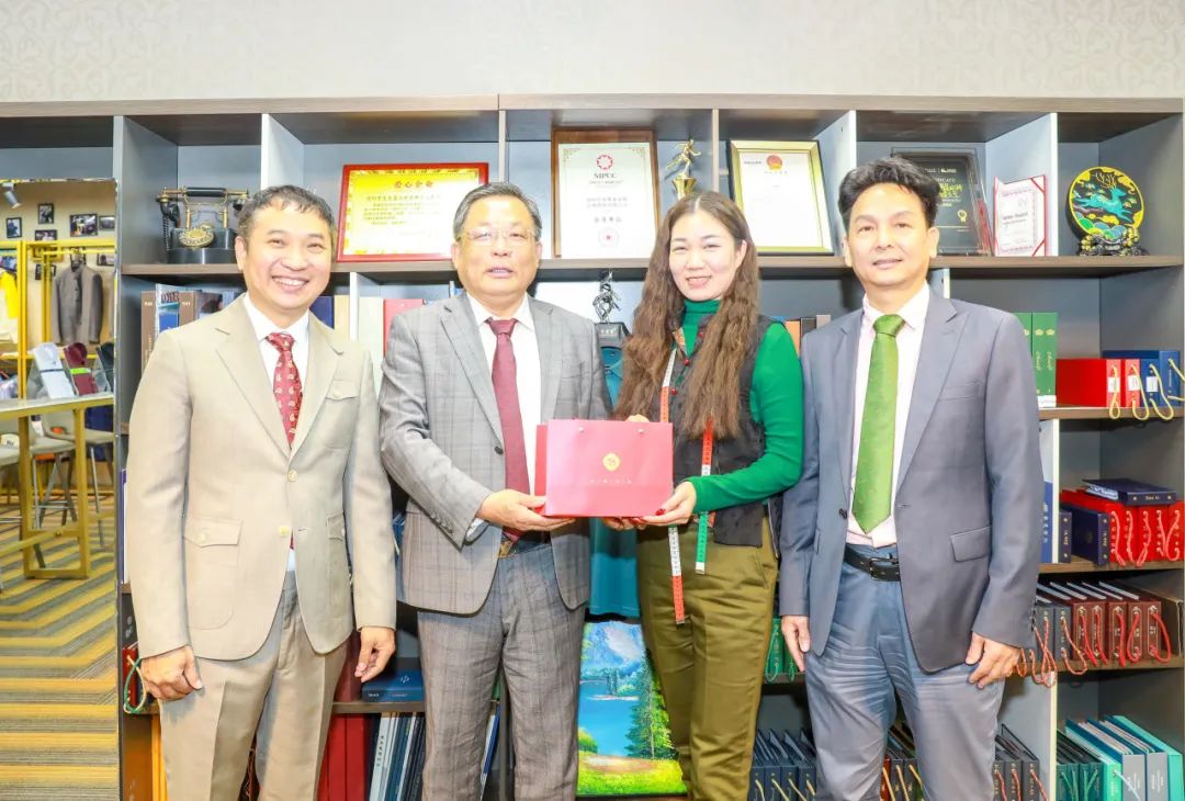2024年2月23日下午,深圳市产业园区商会监事长、万国城总经理林灿彬,副会长兼秘书长蔡淳林,商会理事、深圳市佳人酒业有限公司总经理梁芬,副秘书长郑建国等一行前往我会会员单位-深圳市衣管家定制品牌管理有限公司参观走访。