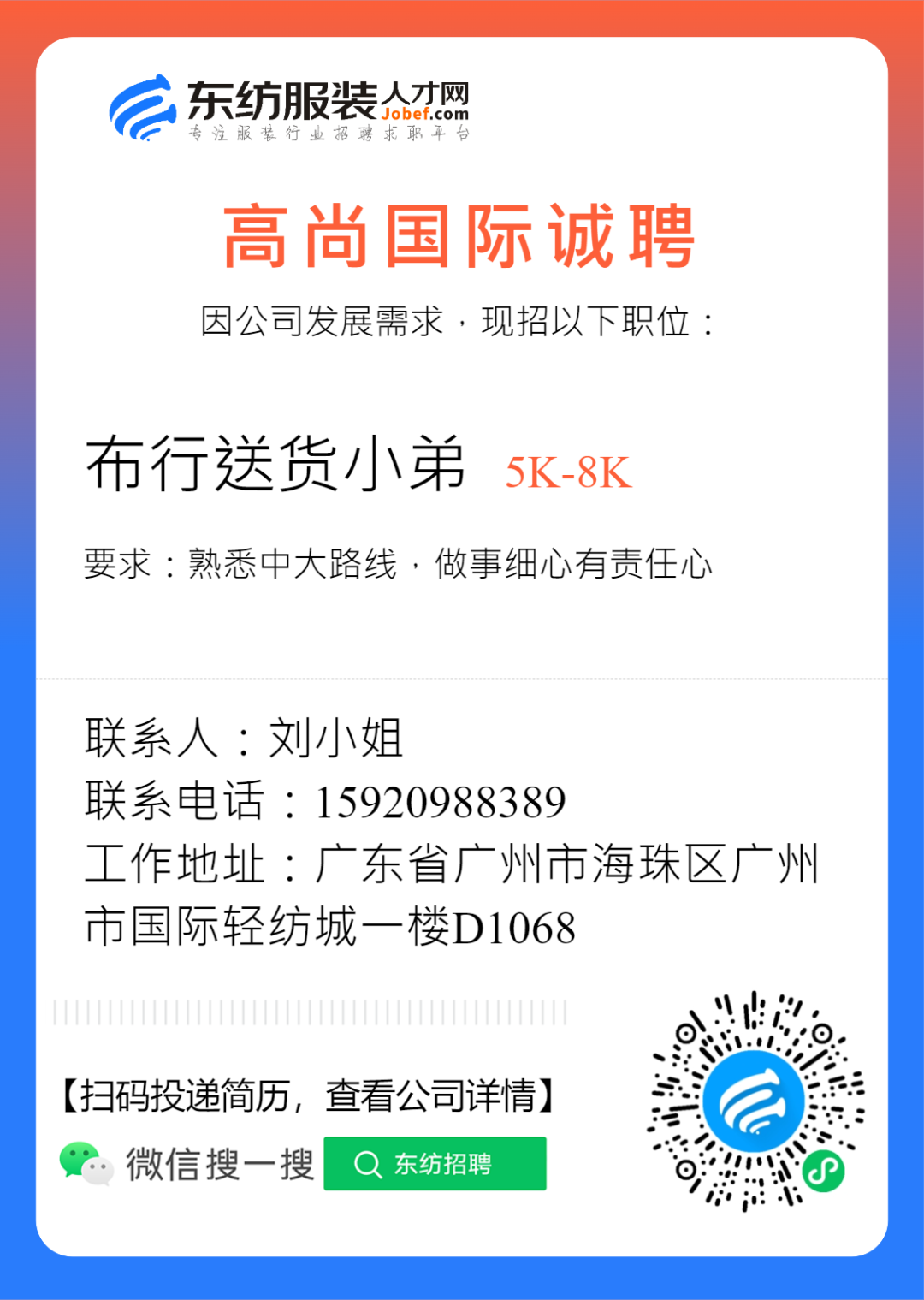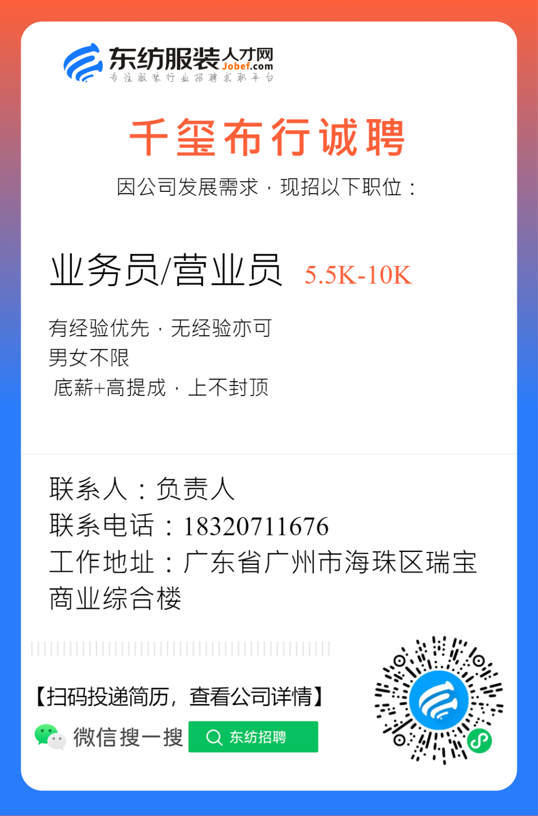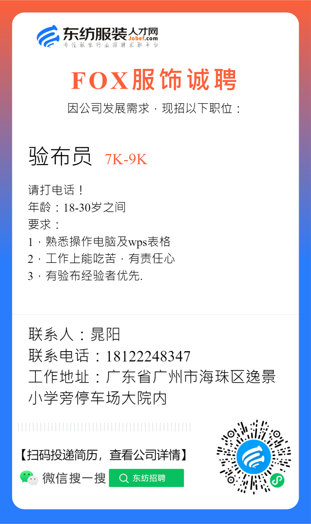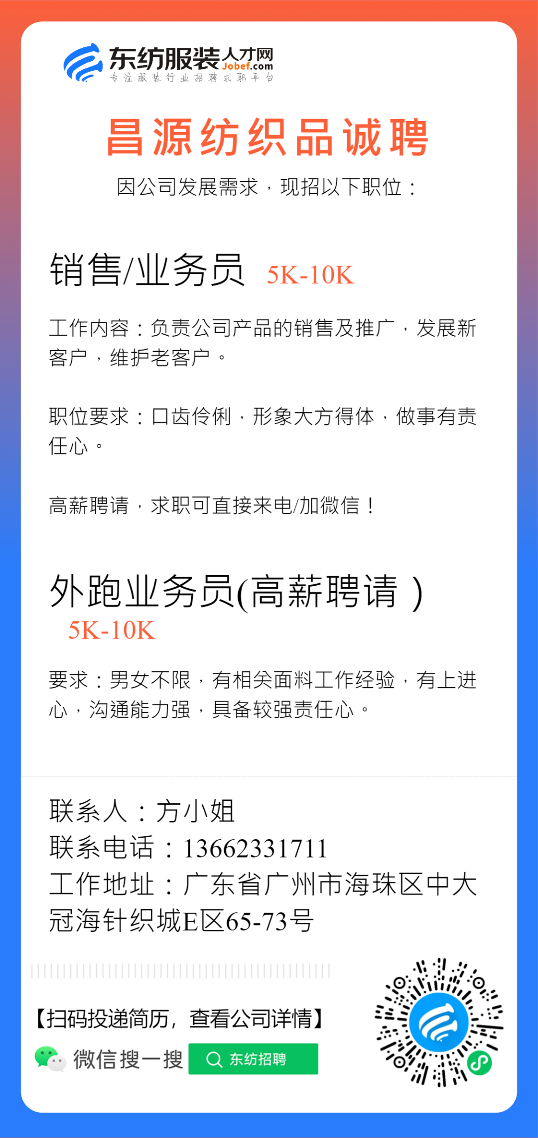 服装招聘·布行类丨2. 28号,验布员、布行销售、质检员……