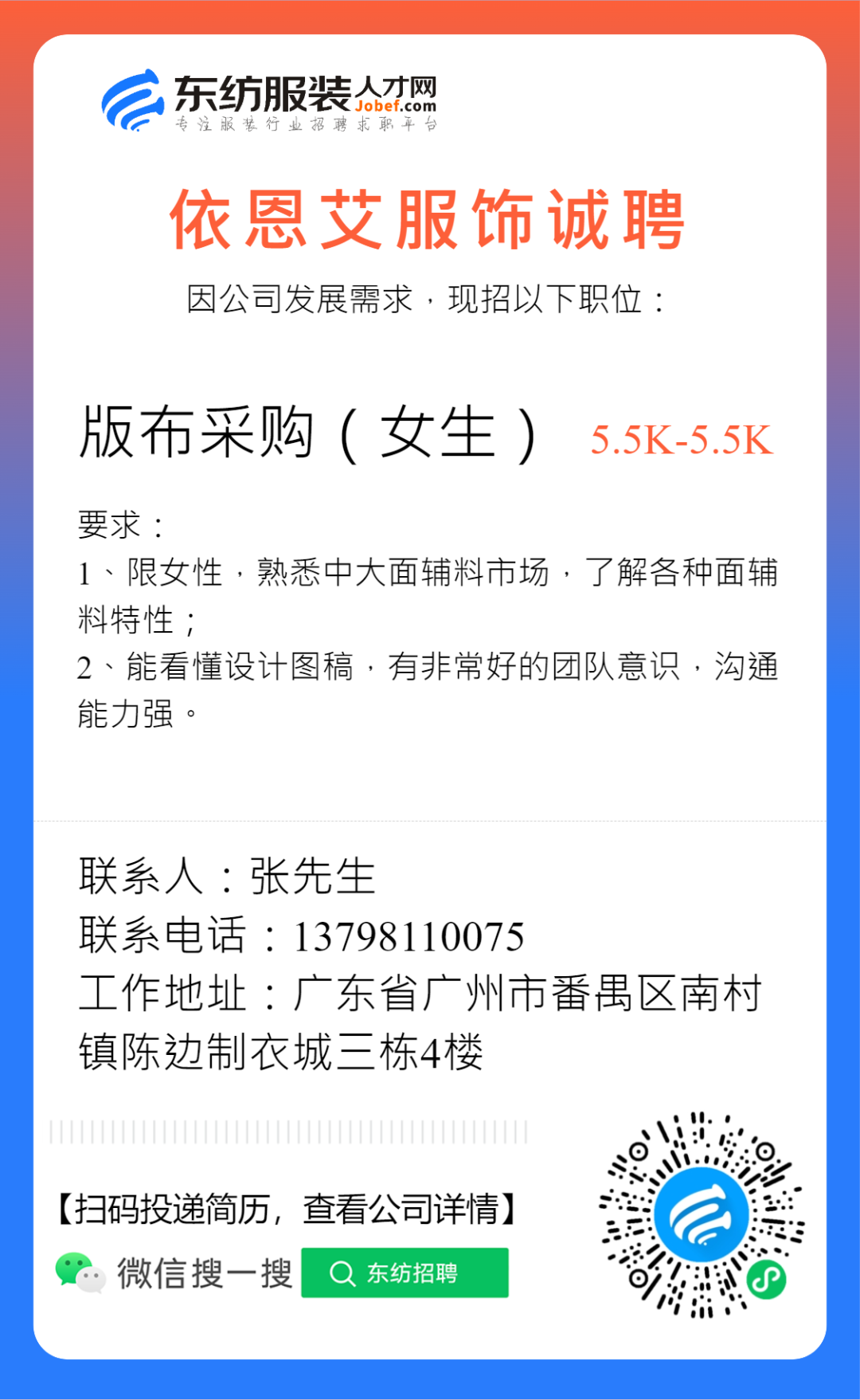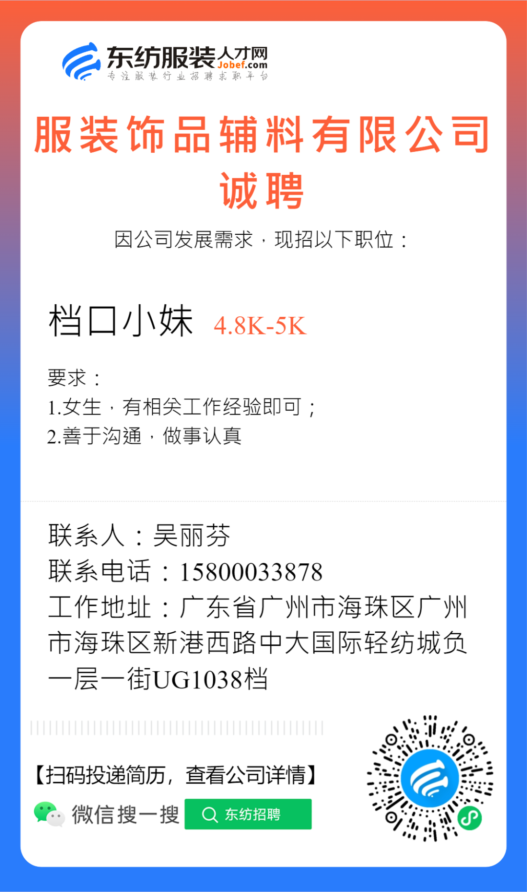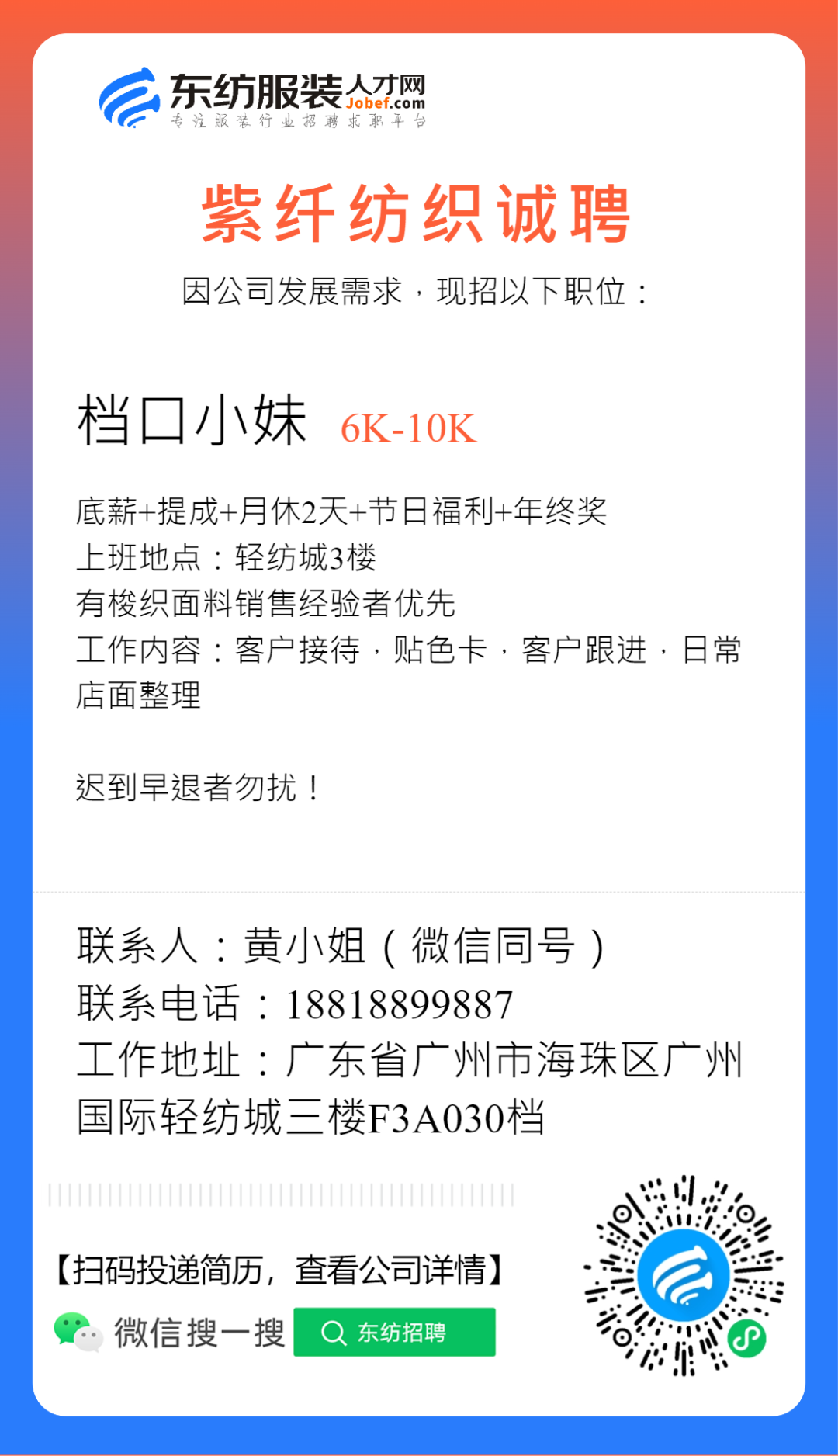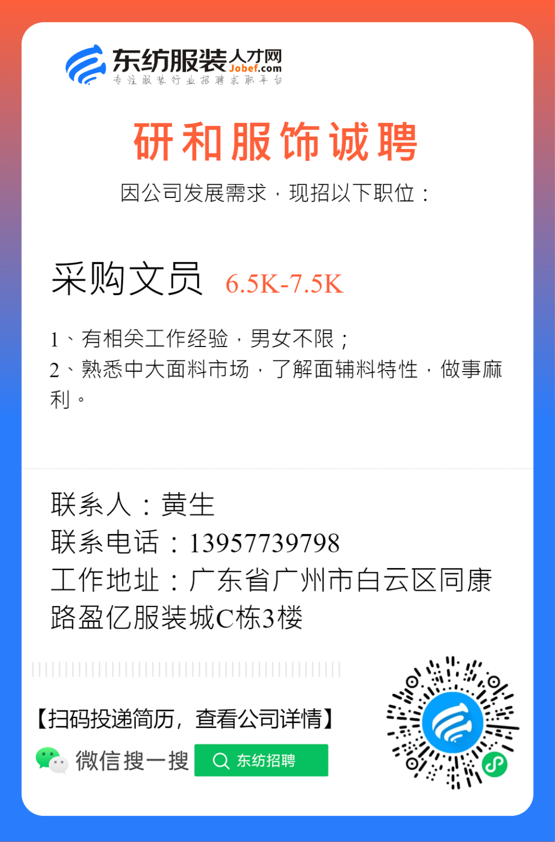 服装招聘·布行类丨2. 28号,验布员、布行销售、质检员……
