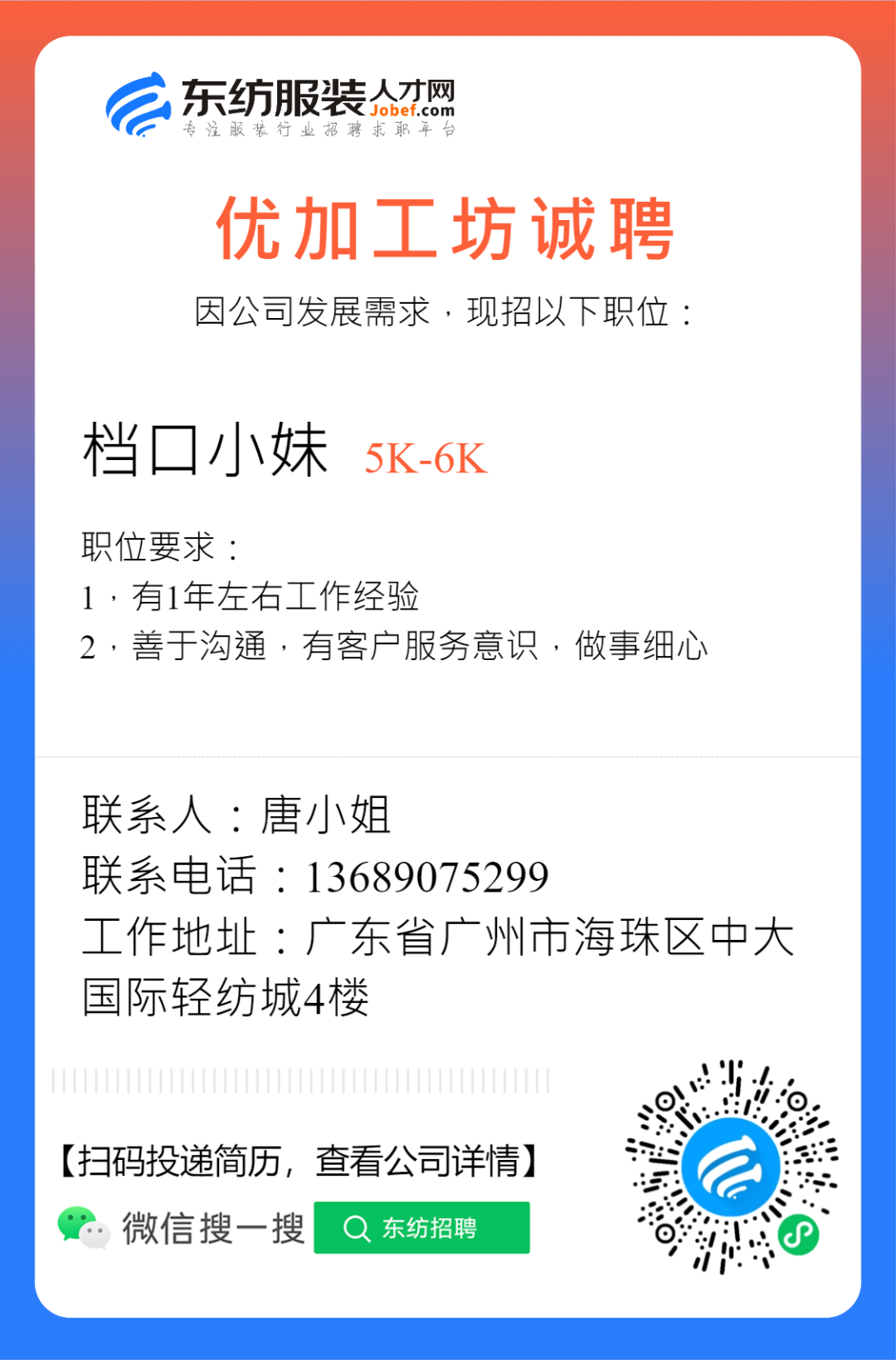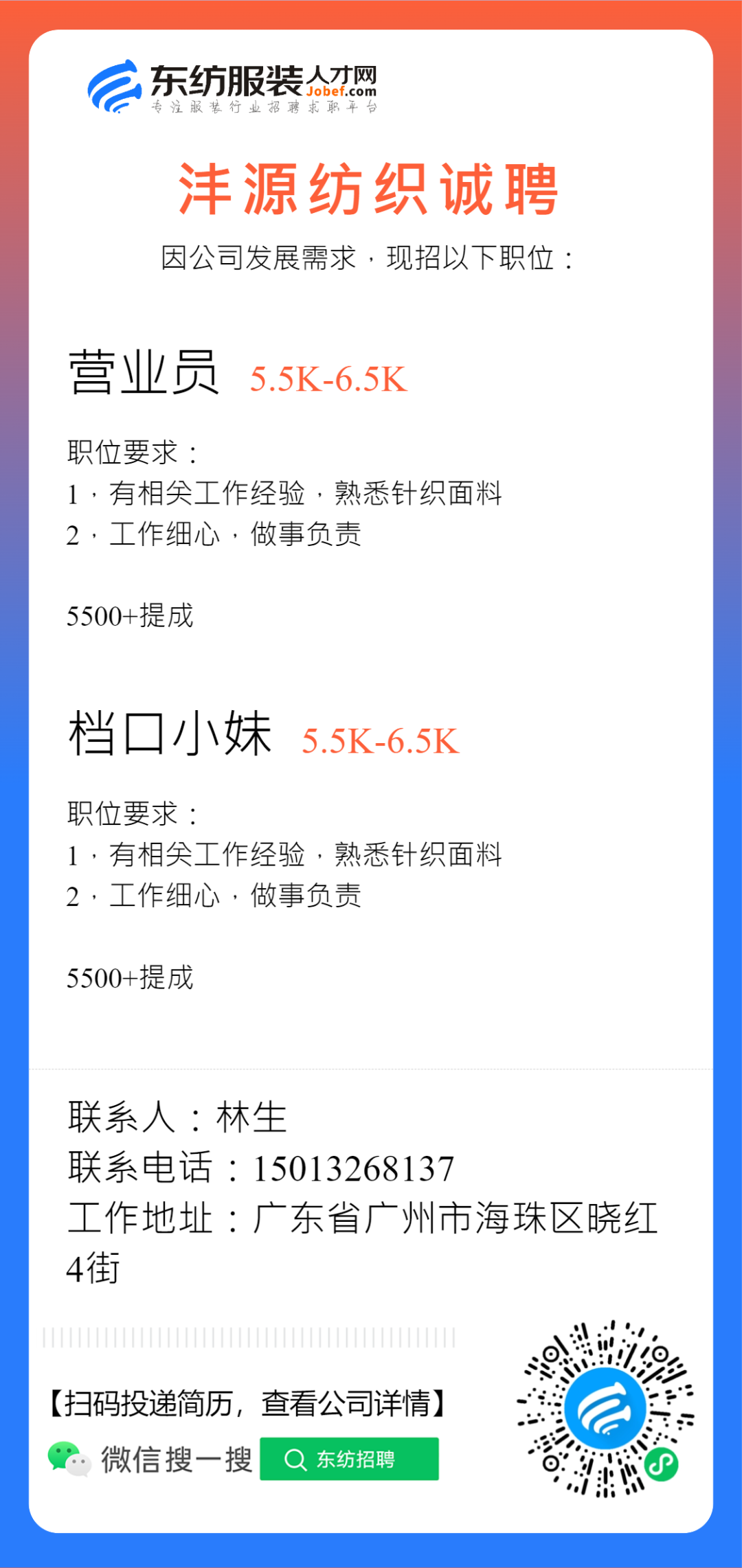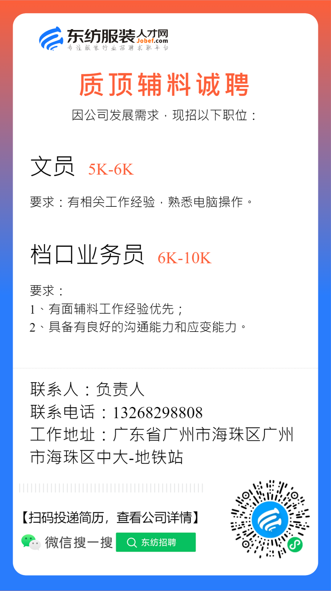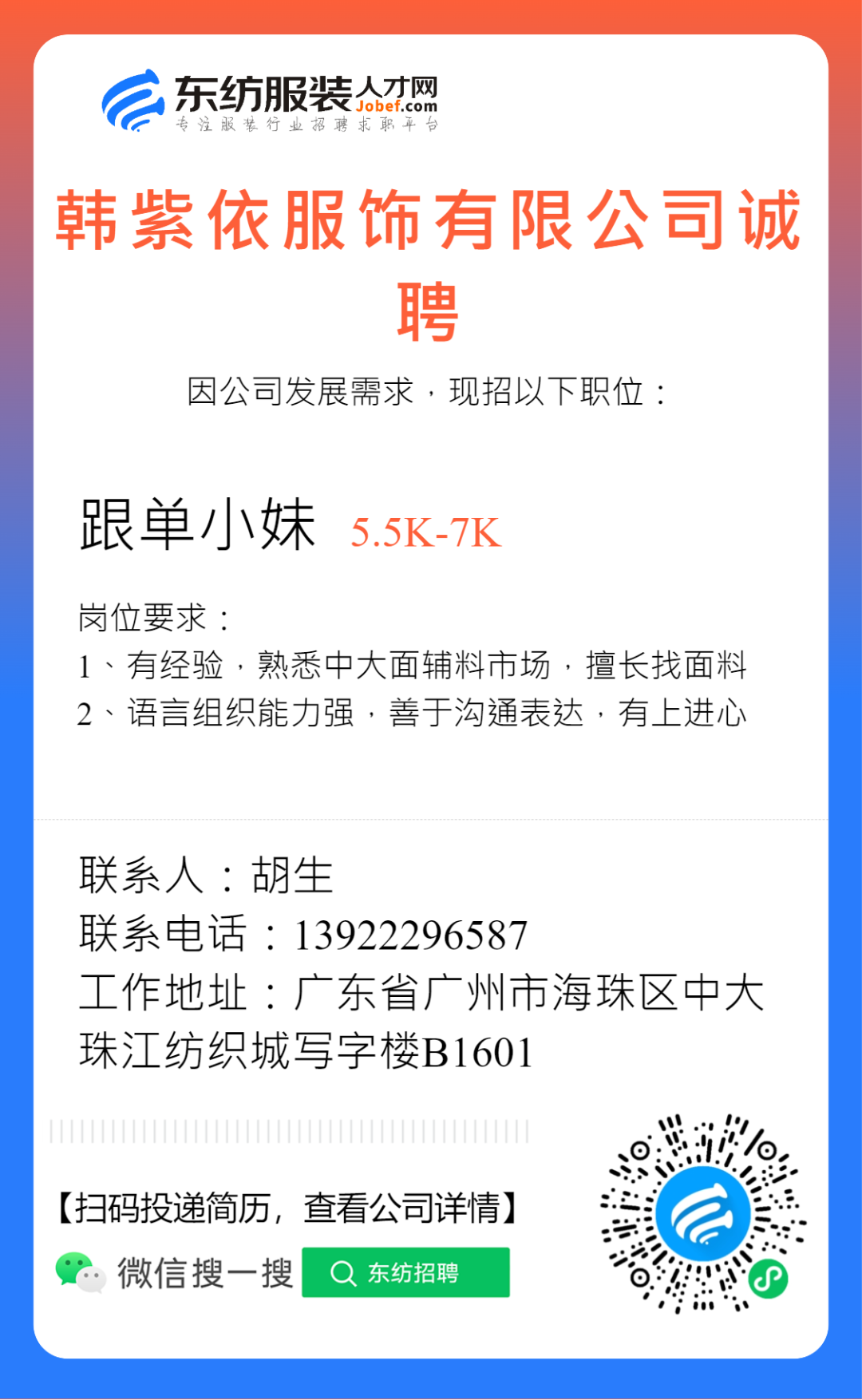 服装招聘·布行类丨2. 28号,验布员、布行销售、质检员……